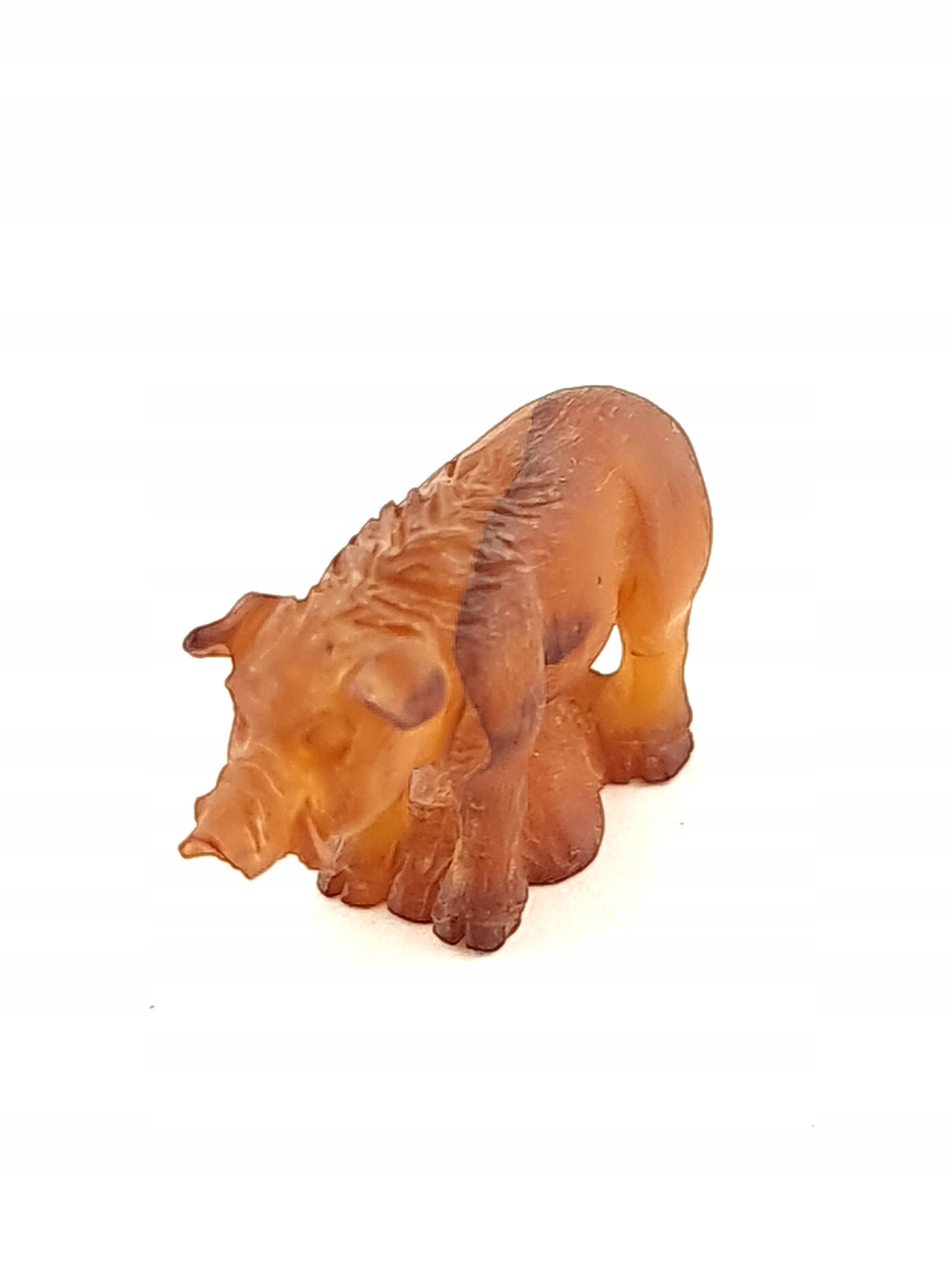 Красивая, замысловатая скульптура кабана ручной работы, изготовленная из цельного куска 100% натурального балтийского янтаря. Точная работа с деталями!