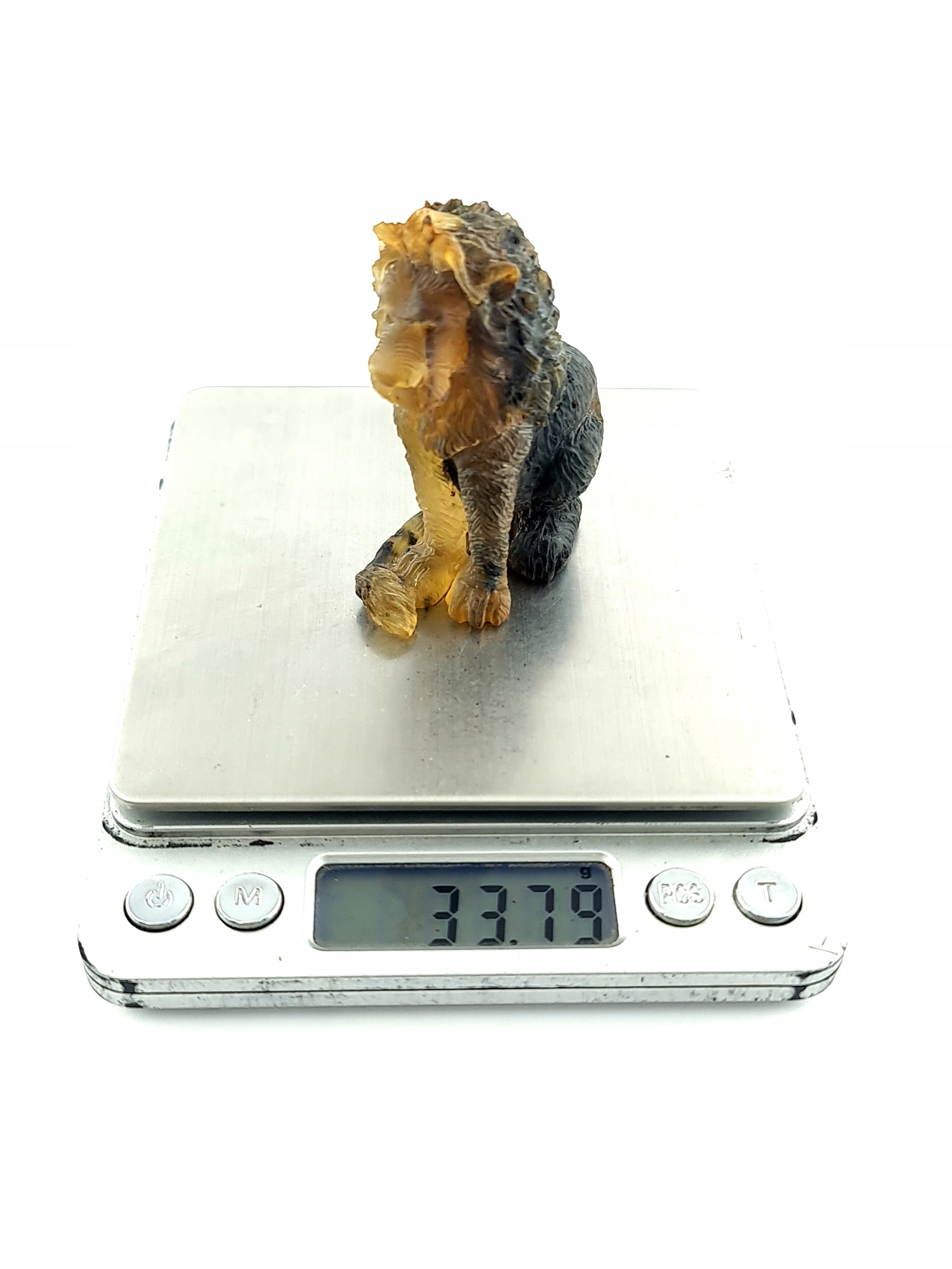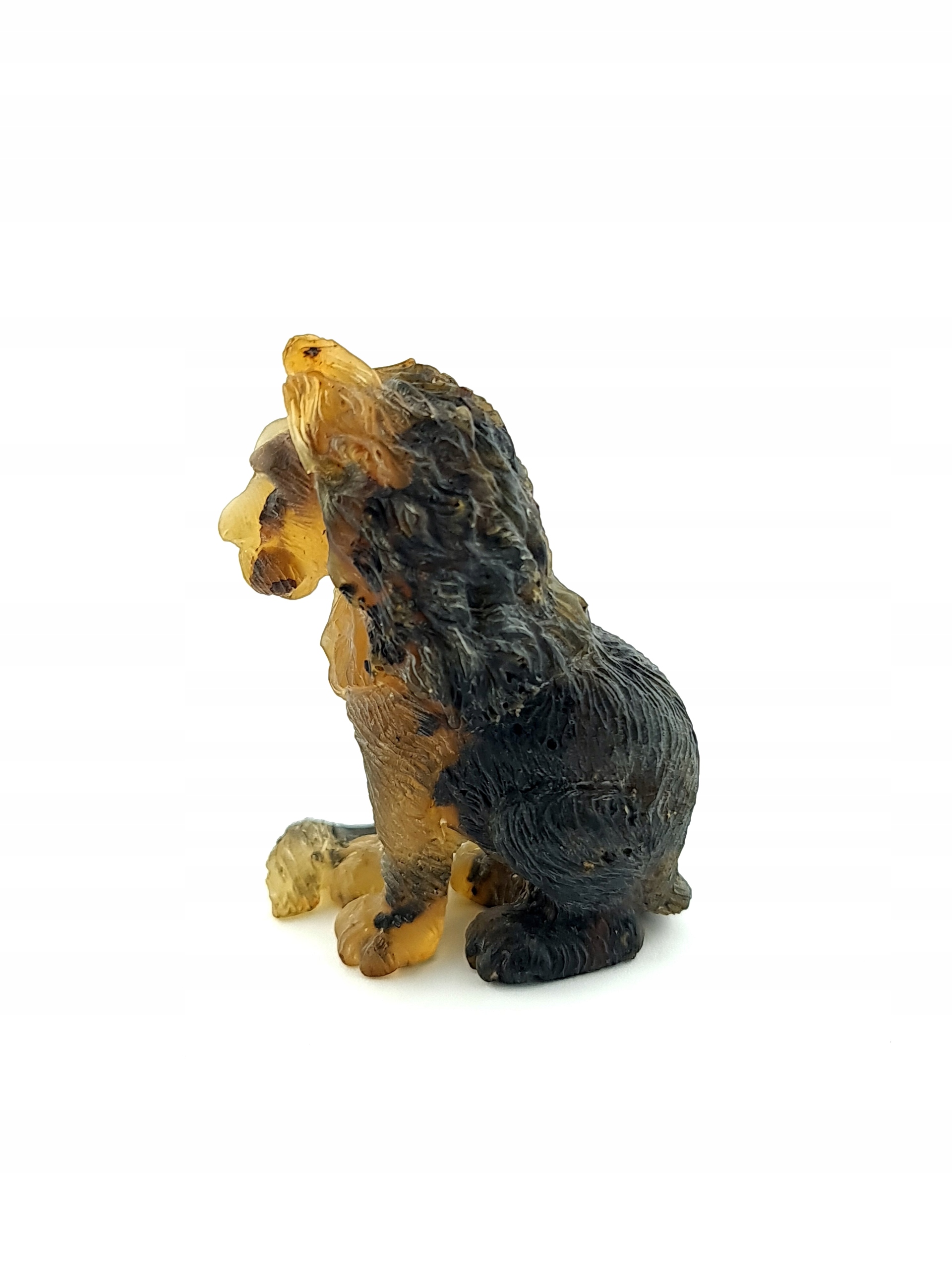 Красивая, замысловатая скульптура льва ручной работы, изготовленная из цельного куска 100% натурального балтийского янтаря. Точная работа с деталями!