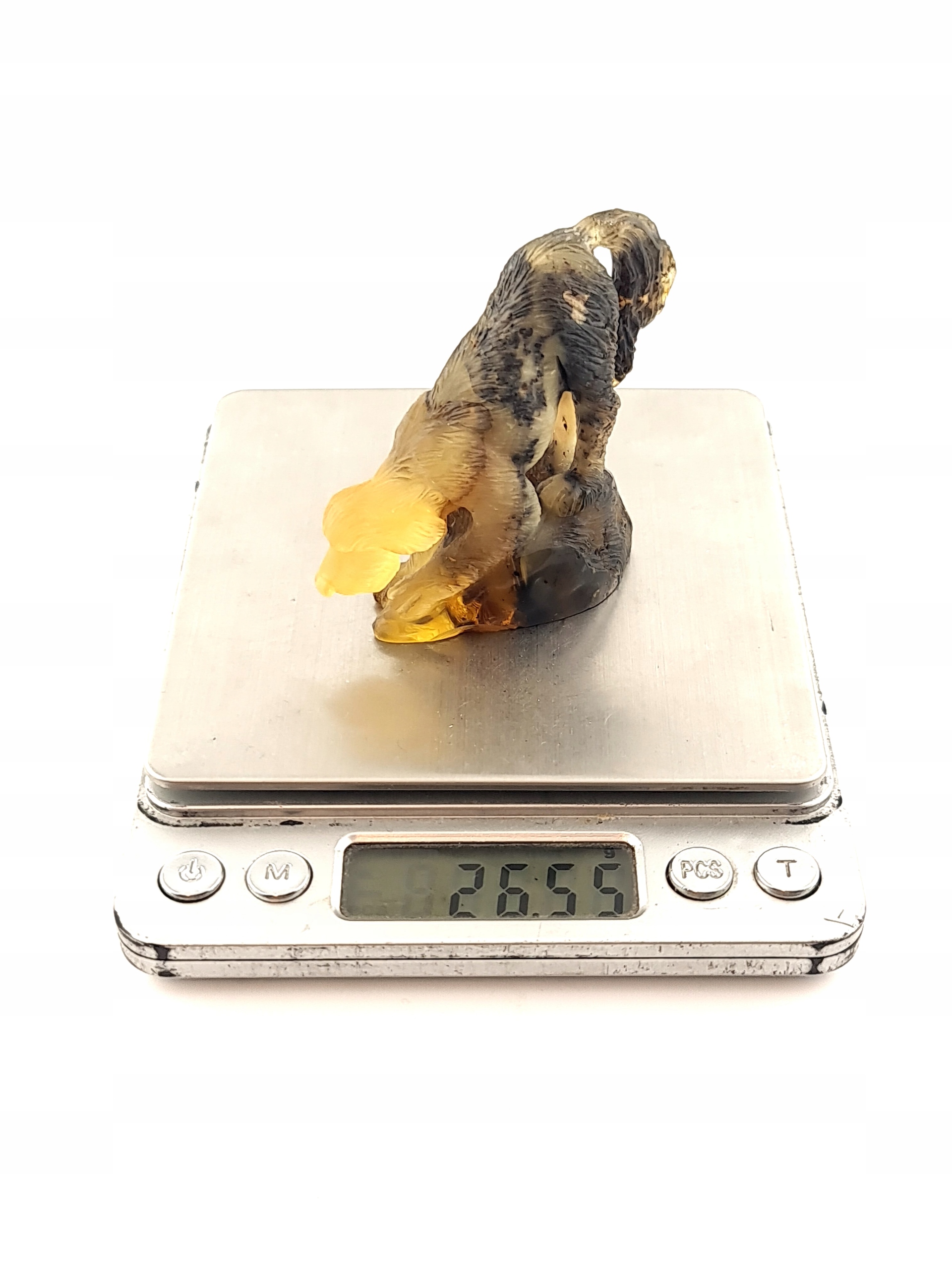 Красивая, замысловатая, ручная скульптура нюхающей собаки, сделанная из цельного куска натурального балтийского янтаря. Точная работа с деталями!