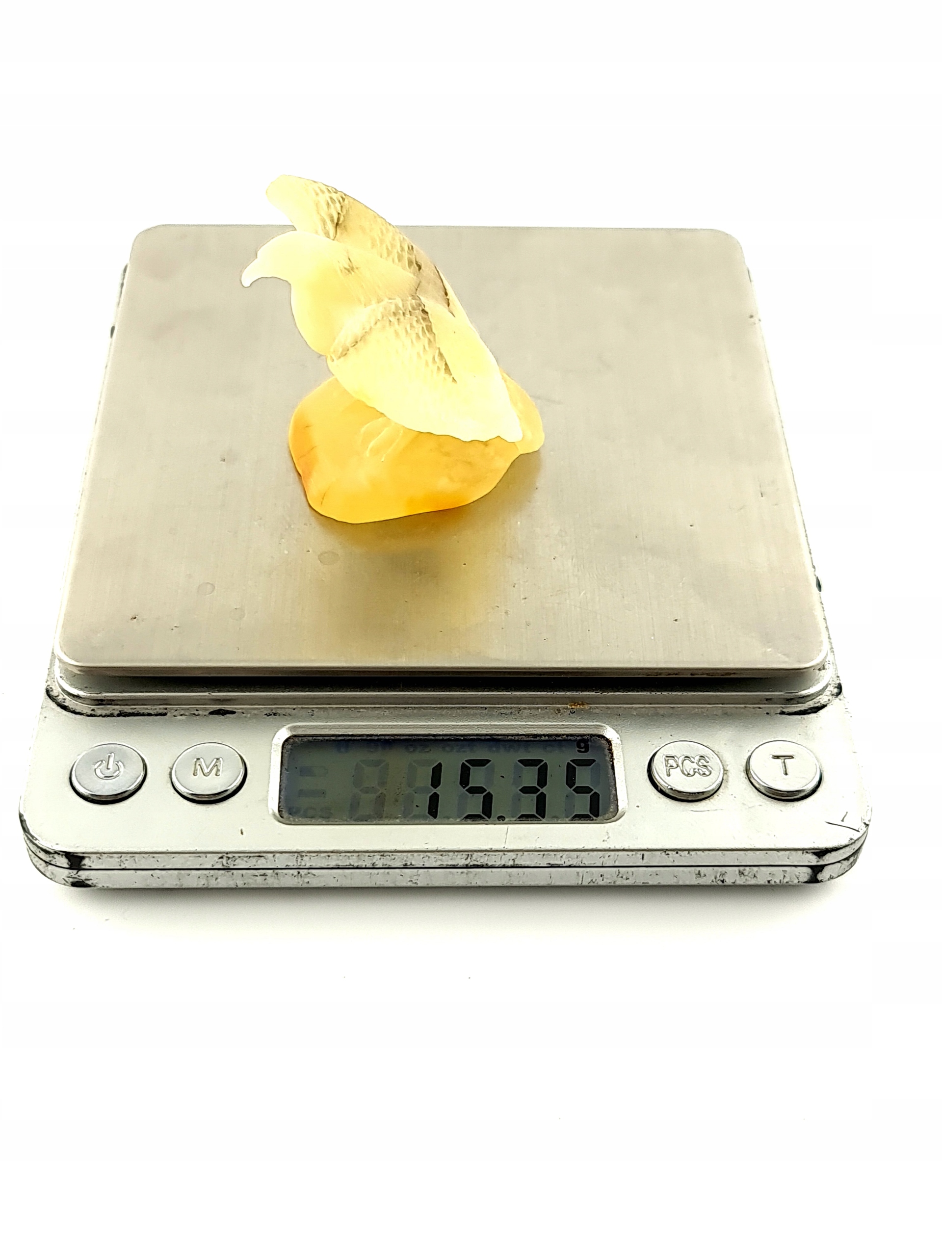 Красивая, замысловатая, ручная скульптура орла из цельного куска природного, балтийского янтарь. Точная работа с деталями!