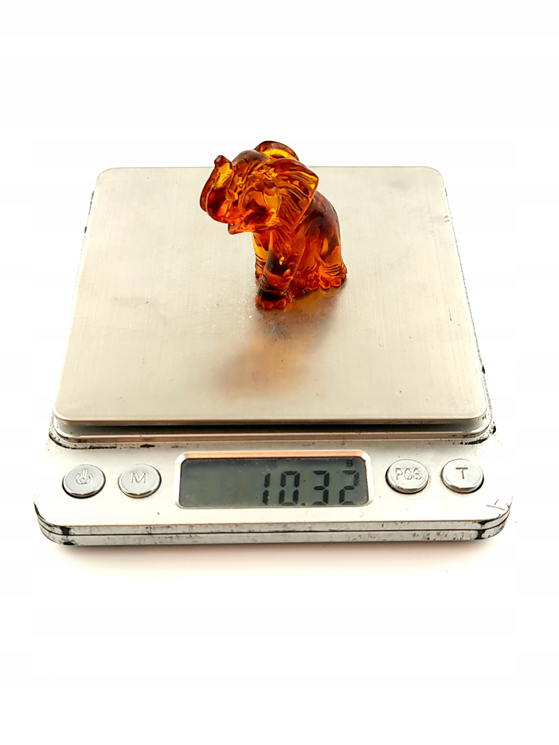 Красивая, замысловатая скульптура слона ручной работы, изготовленная из цельного куска 100% натурального балтийского янтаря. Точная работа с деталями!