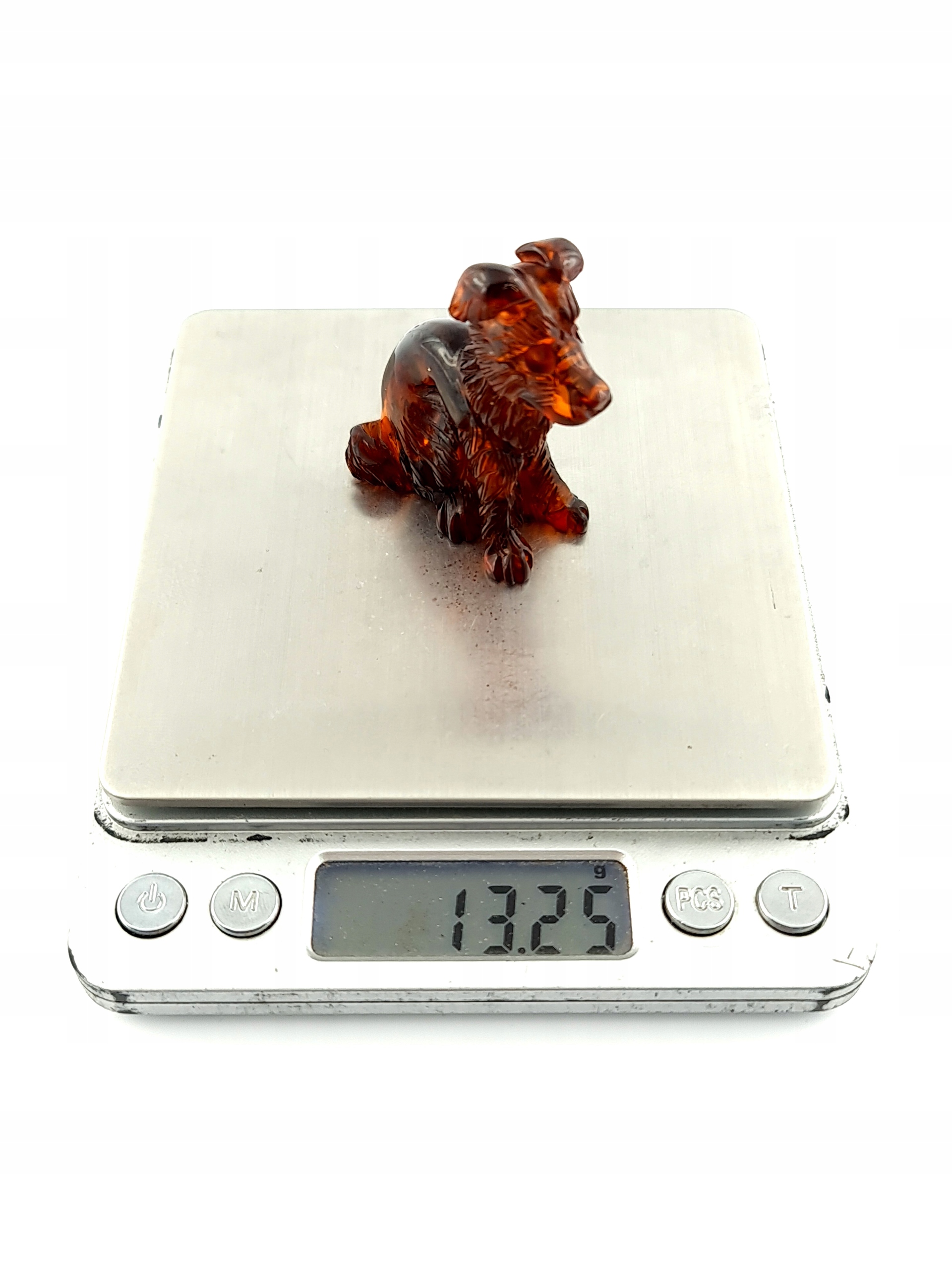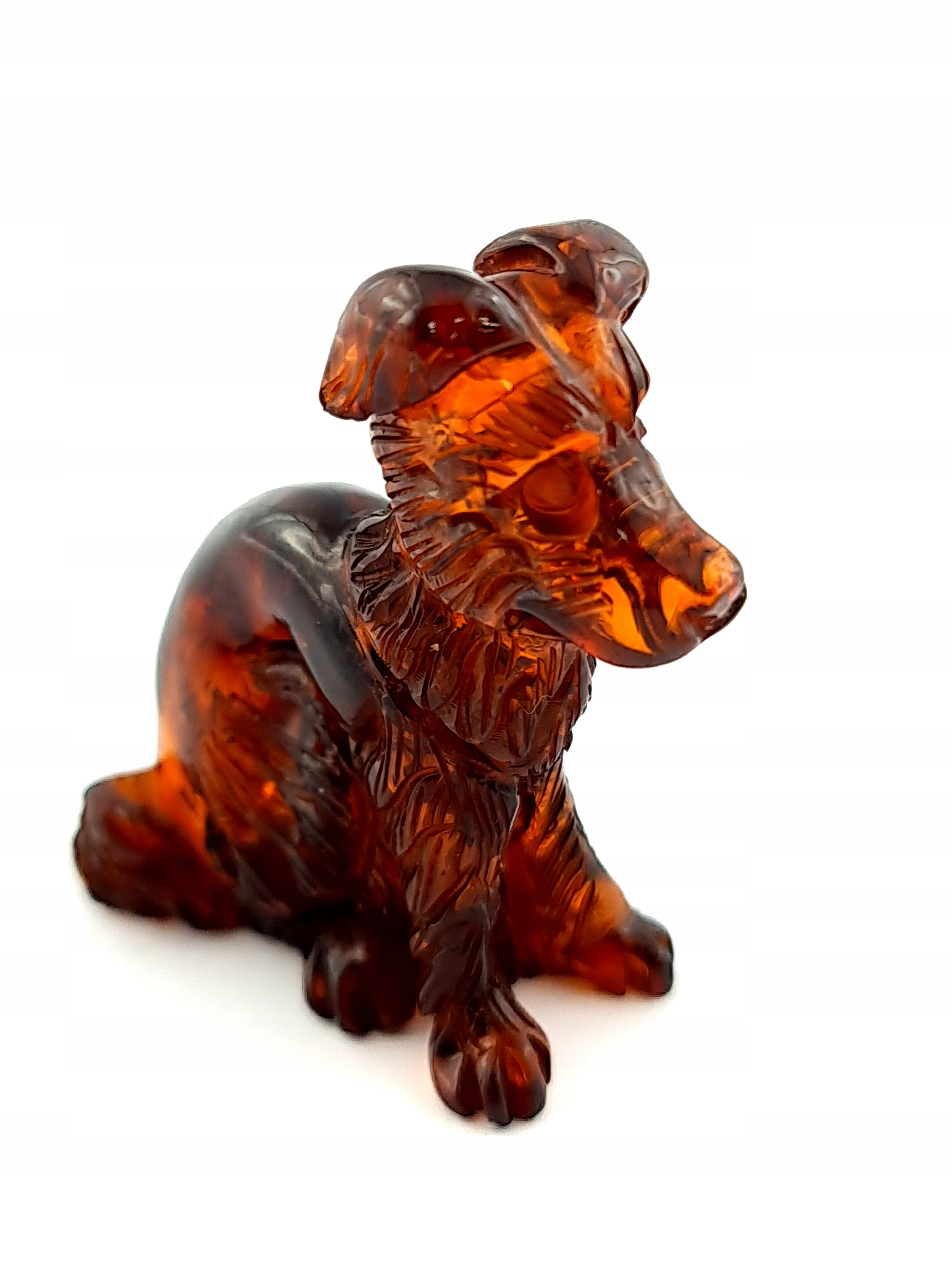 Красивая, замысловатая ручная скульптура собаки, изготовленная из цельного куска 100% натурального балтийского янтаря. Точная работа с деталями!