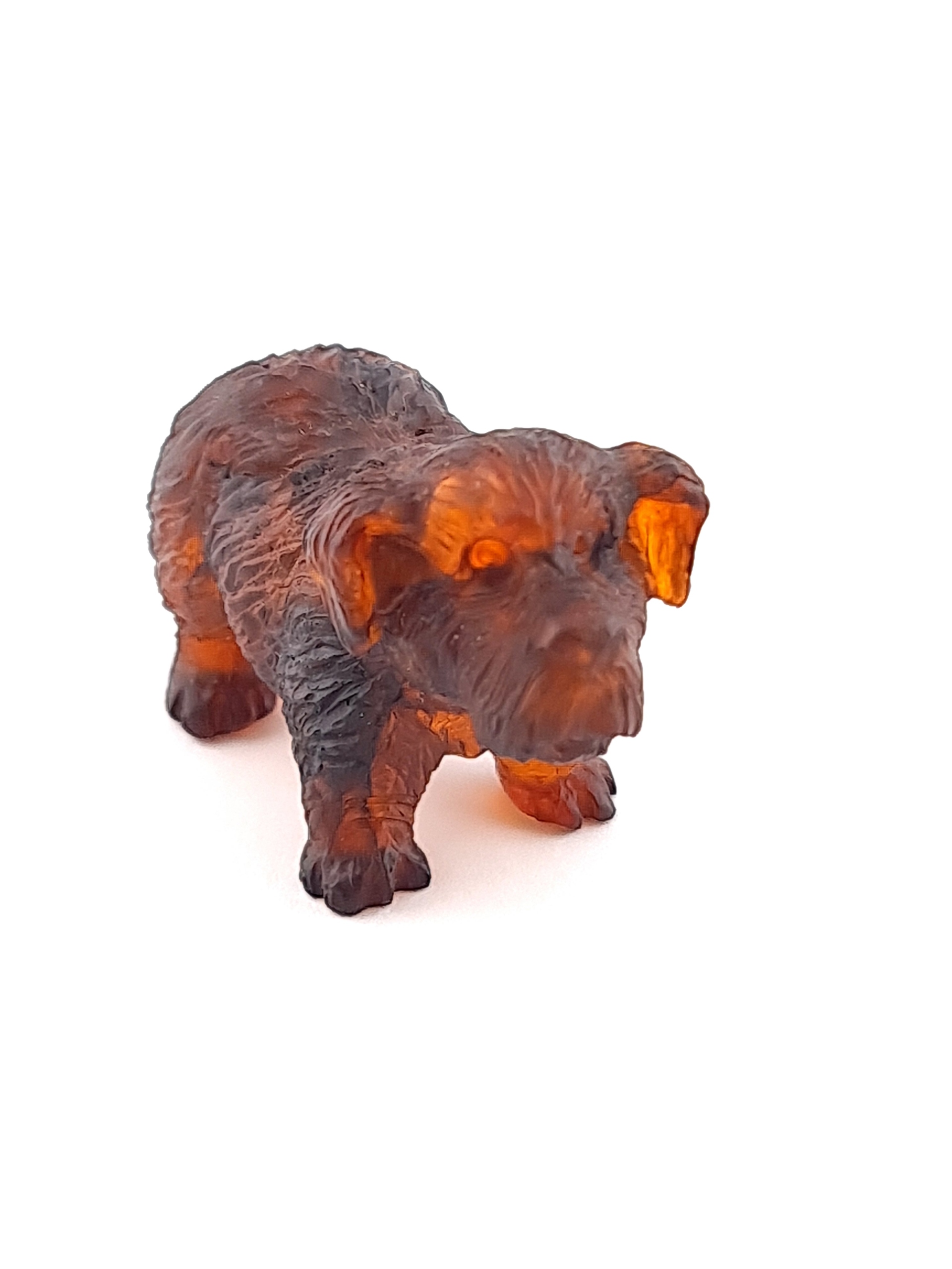Красивая, замысловатая ручная скульптура собаки, изготовленная из цельного куска 100% натурального балтийского янтаря. Точная работа с деталями!