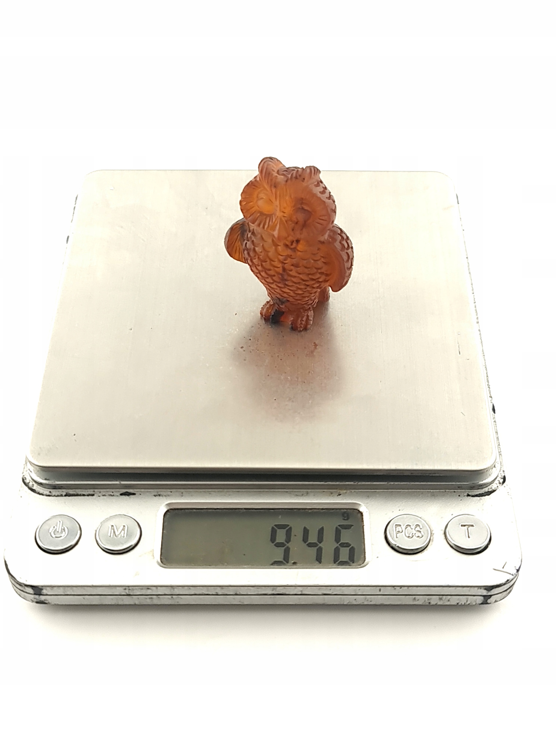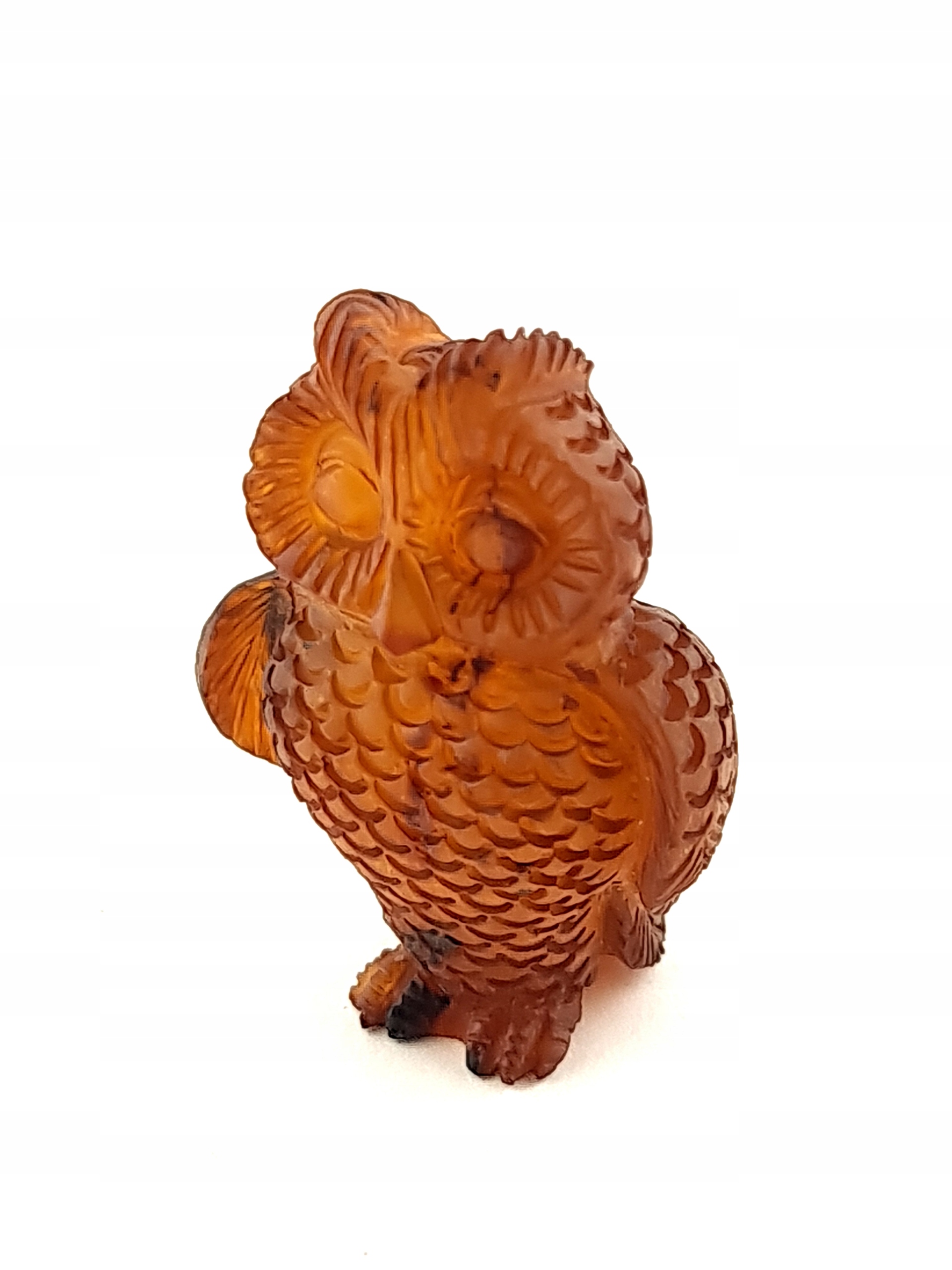Красивая, замысловатая, ручная скульптура совы из цельного куска природного, балтийского янтарь. Точная работа с деталями!
