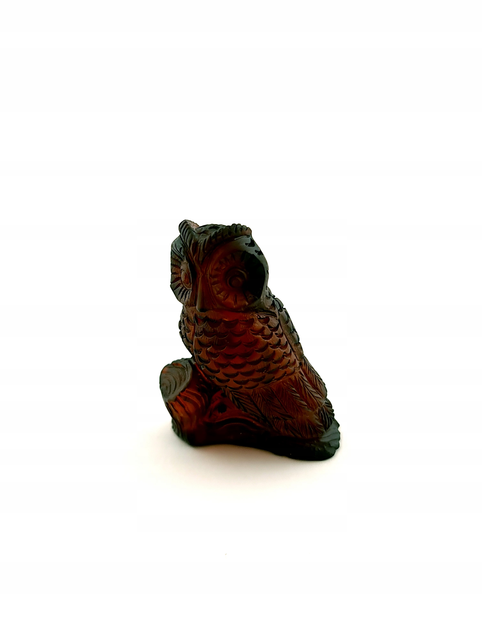 Красивая, замысловатая скульптура совы ручной работы, изготовленная из цельного куска 100% натурального балтийского янтаря. Точная работа с деталями!