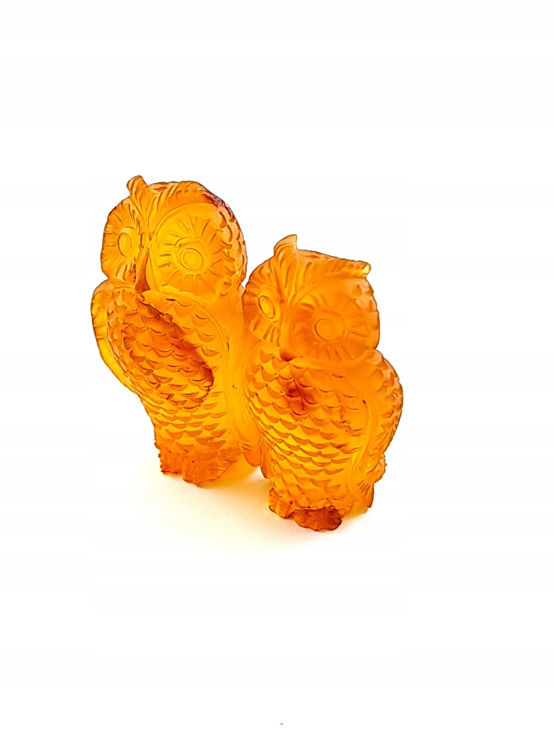 Красивая, замысловатая, ручная скульптура двух сов, изготовленная из одного куска 100% натурального балтийского янтаря. Точная работа с деталями!