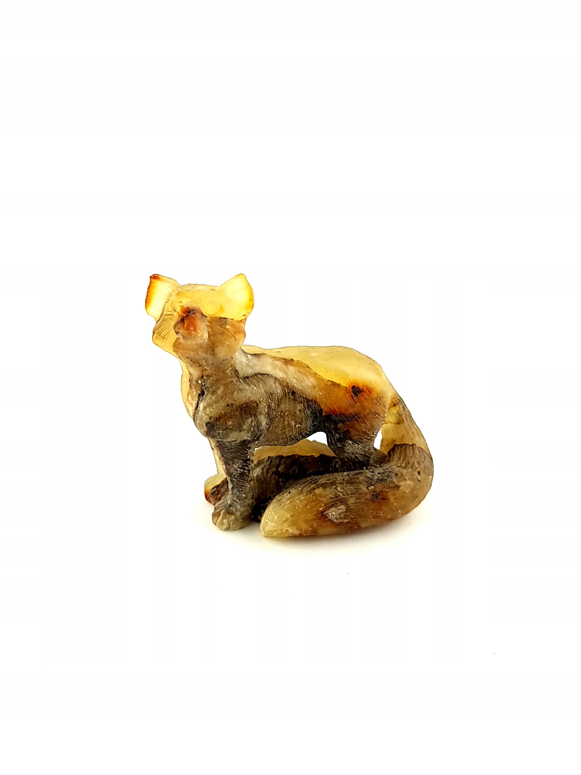 Красивая, замысловатая, ручная скульптура волка, сделанная из одного куска 100% натурального балтийского янтаря. Точная работа с деталями!