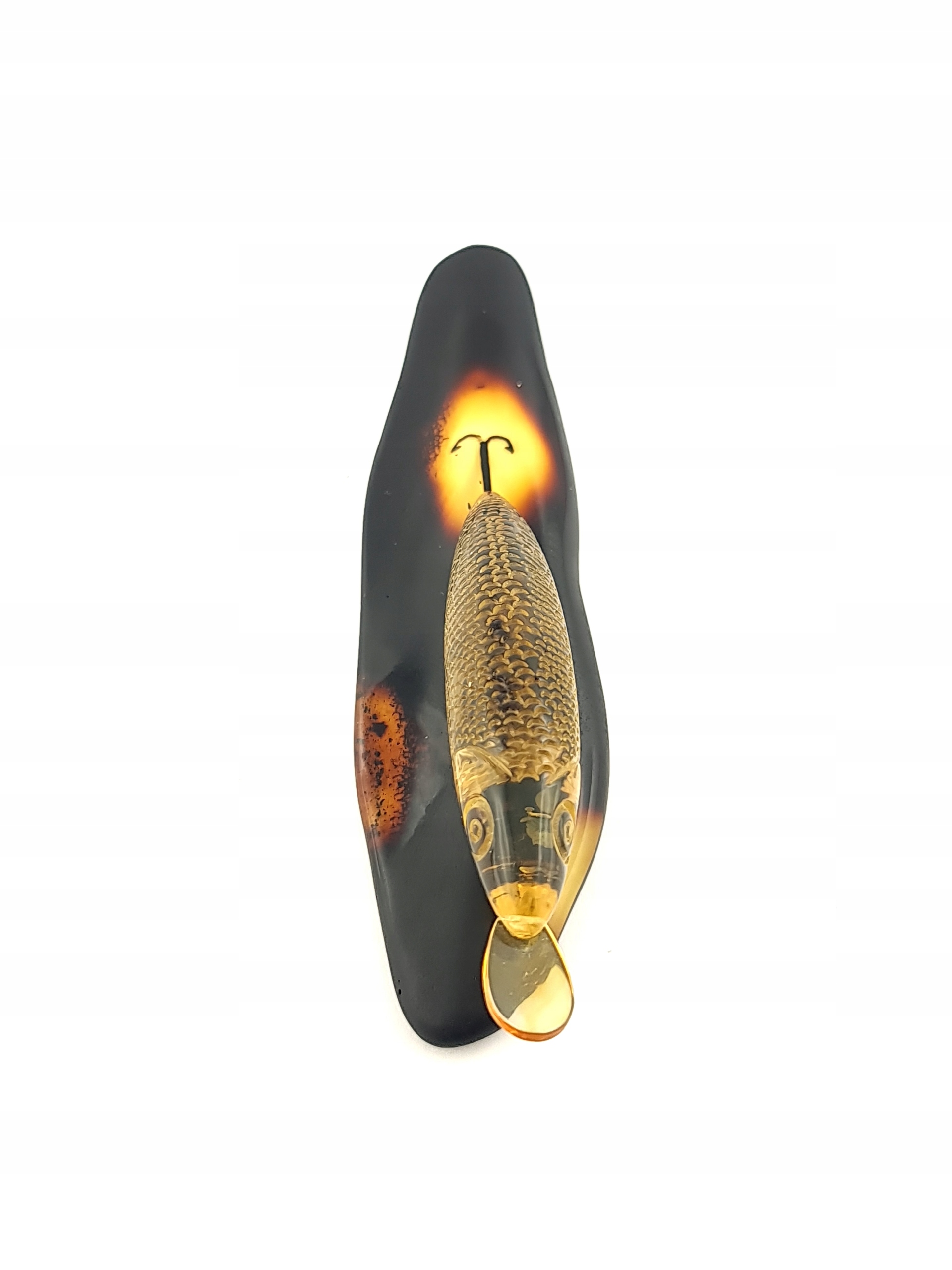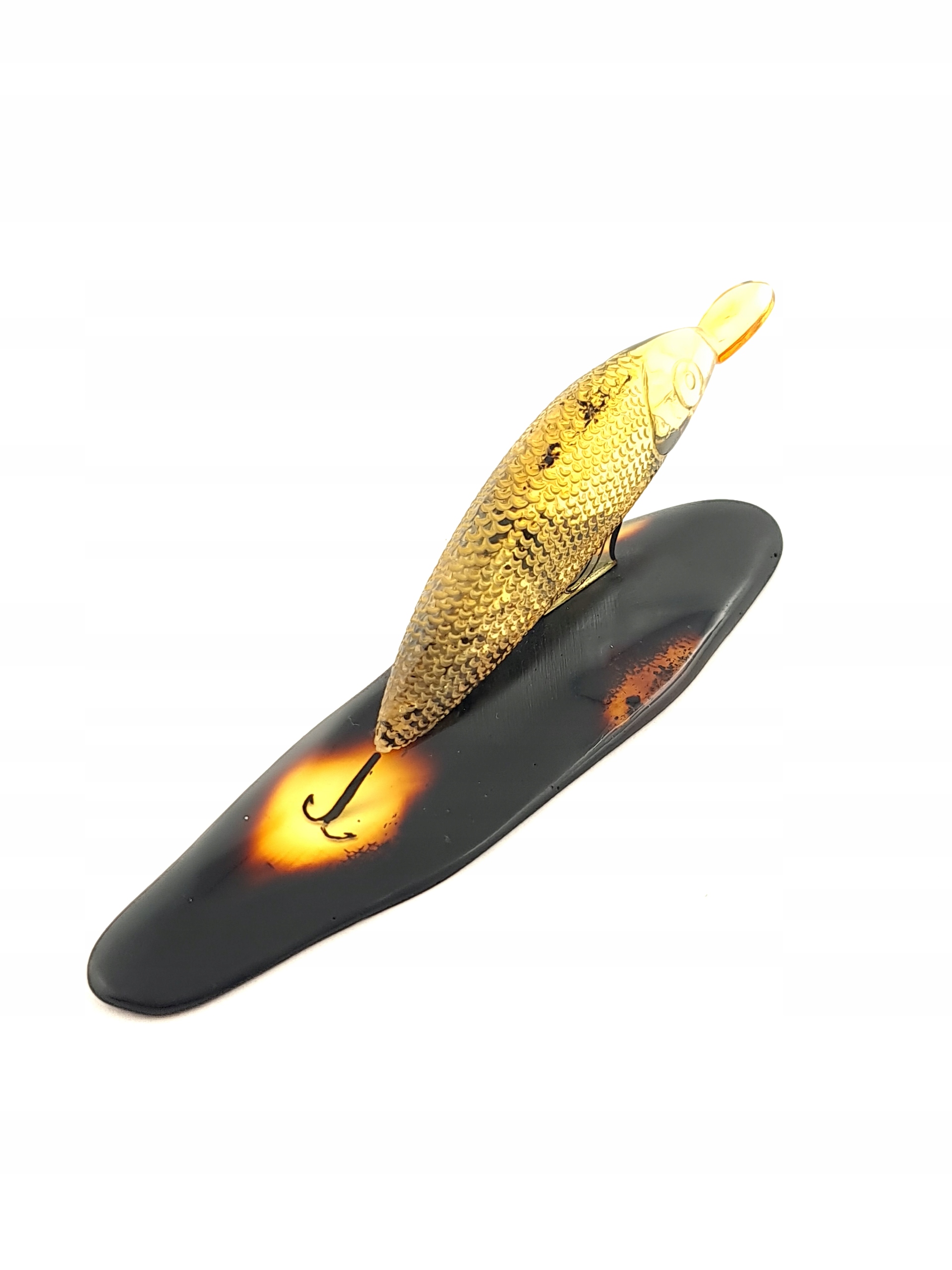 Красивая, замысловатая скульптура рыболовного воблера ручной работы из натурального балтийского янтаря. Точная работа с деталями!