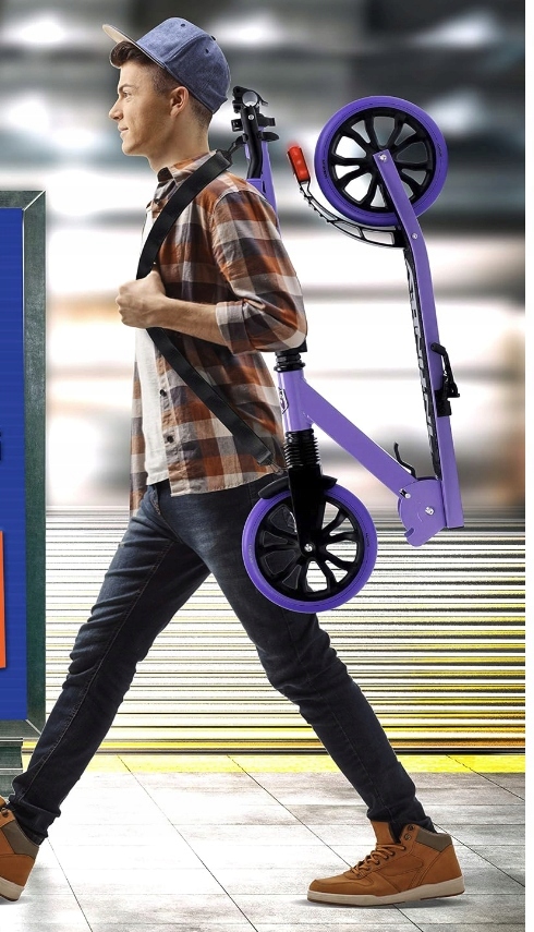 Благодаря простому механизму складывания скутера легко сложить и распространять одним перемещением. Сложный скутер легко хранить, например, под столом, в школьном кабинете или в машине. Размеры сложного скутера составляют только 81 см х 12,5 см х 32,3 см