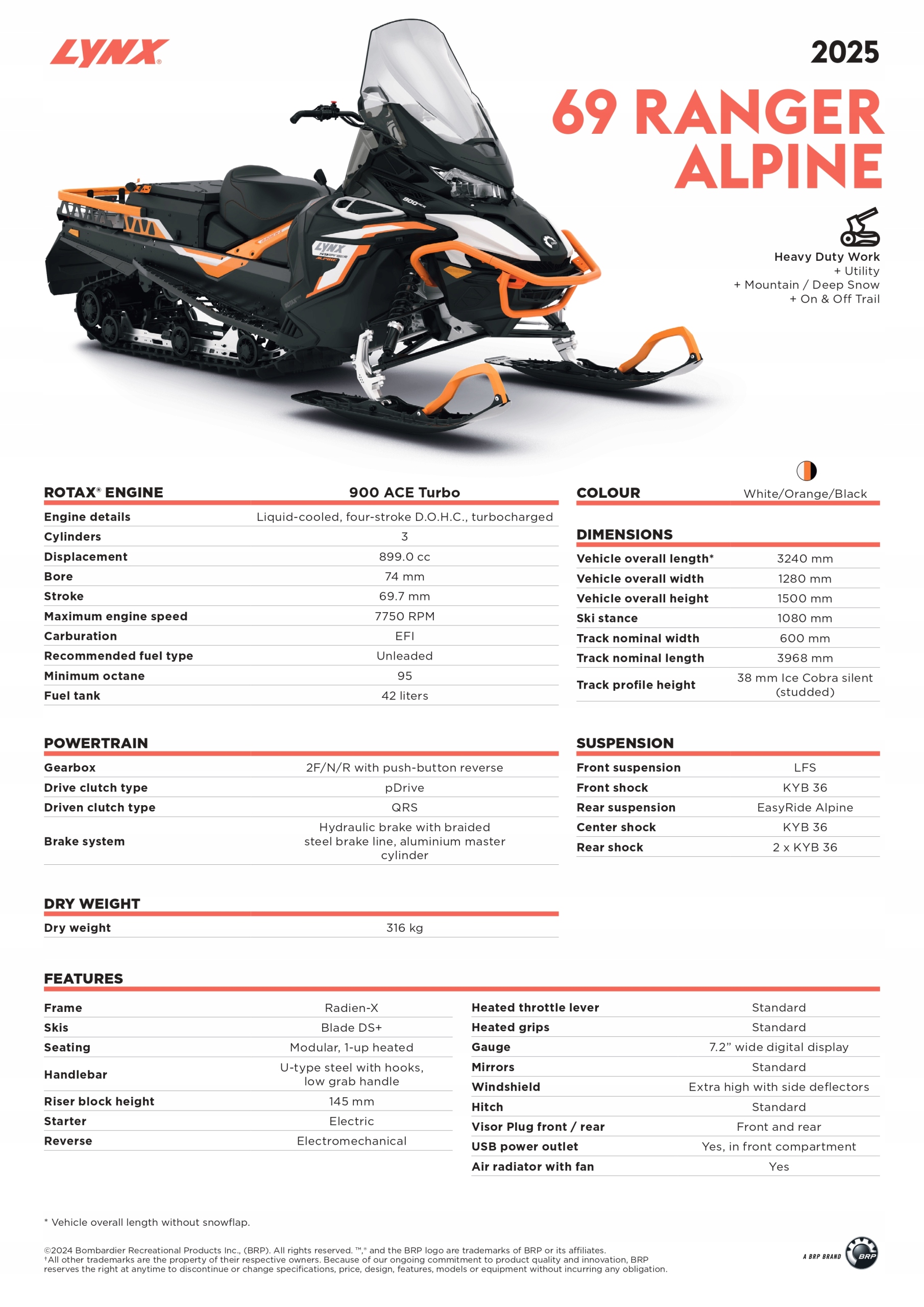 Skuter Śnieżny LYNX 69 Ranger Alpine 900 ACE Turbo 2025