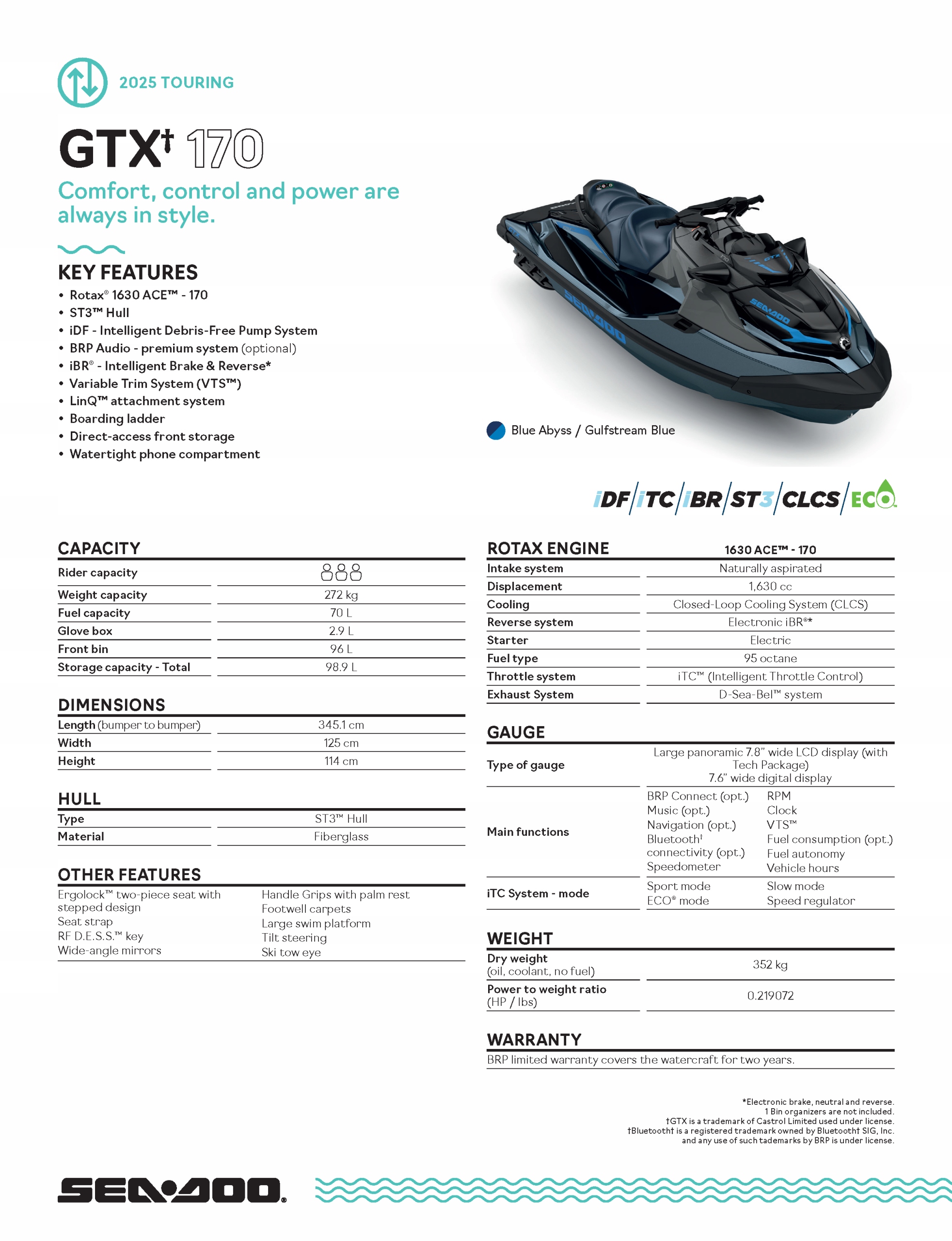 SEA DOO GTX 170 IDF MODEL 2025 Water Scooter