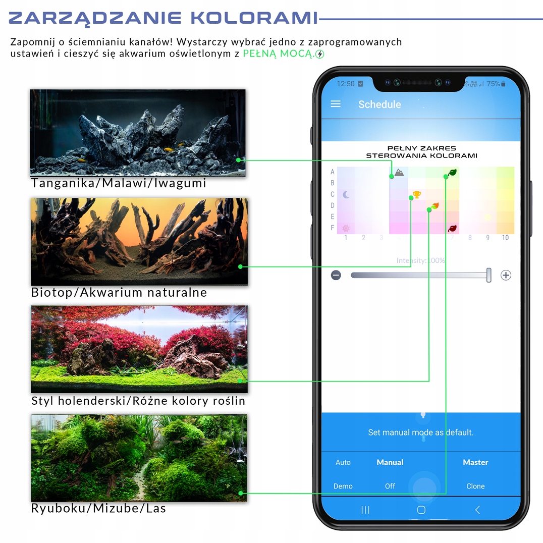 Одной из уникальных особенностей этой лампы является возможность просто выбрать одну из настроек, а затем предоставить электронике лампы возможность компоновать свет в соответствии с вашими предпочтениями. Это не только экономит время, но и гарантирует, что ваш аквариум всегда будет выглядеть в лучшем свете.