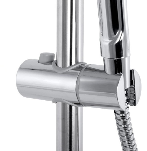 Держатель душевой лейки изготовлен из прочного материала ABS. Он рассчитан на душевую штангу диаметром 22 мм. Есть возможность регулировать угол и наклон душевой лейки.