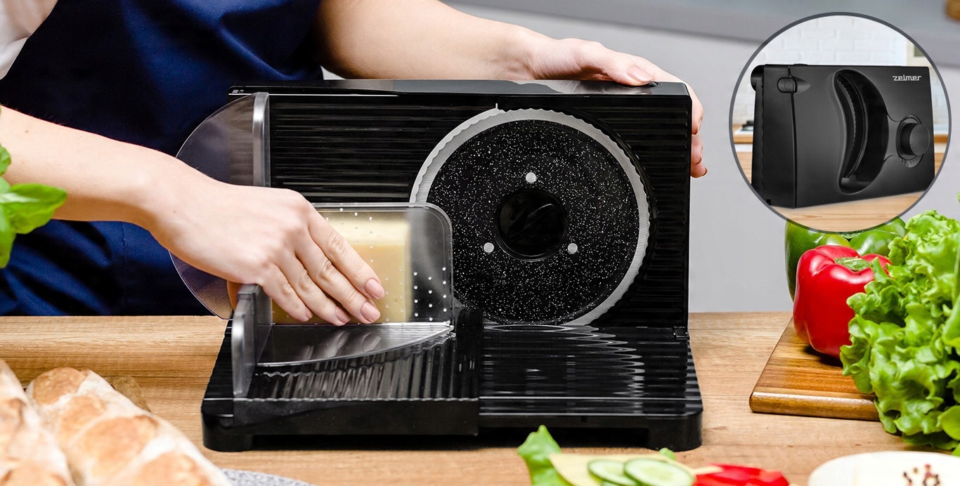 Самый быстрый и простой способ нарезать хлеб, мясное ассорти и сыр — использовать надежный слайсер Zelmer. Мощность 150 Вт справится даже с твердыми сырами, а благодаря плавной регулировке толщины нарезки (0-15 мм) вы сможете подогнать ломтики под свои предпочтения. Мы покрыли лезвие из нержавеющей стали каменным покрытием, что сделало его еще более прочным и точным. Встроенная защита от случайного срабатывания обеспечит вашу безопасность, а складная конструкция и отделение для шнура облегчают хранение.
