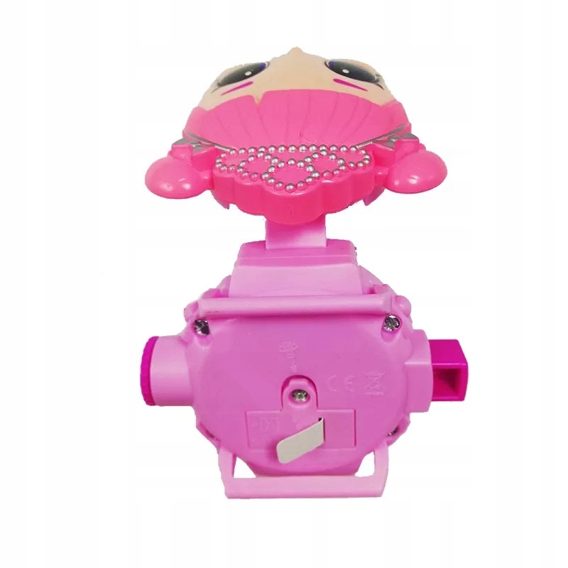 На часах есть проектор для отображения 24 изображений с персонажами куклы LOL. Чтобы отобразить изображения, просто удерживайте кнопку на стороне часа, а затем поверните ручку, отрегулируйте фокус отображаемых изображений.