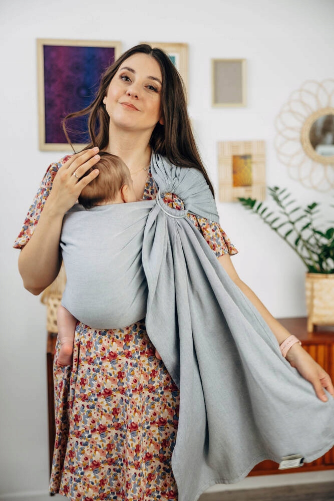 Слинги с кольцами чрезвычайно универсальны как для ребенка, так и для пользователя. При ношении слинга нет ограничений по возрасту и весу ребенка, поэтому начинать носить его можно практически с первого дня жизни малыша. Мы можем носить шарфы до тех пор, пока это удобно ребенку и родителю, который их носит. Стоит уделить внимание корректировке типа крепления и его положения по мере роста и развития ребенка.