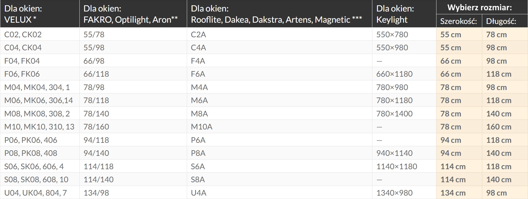 *Роллеты несовместимы с окнами VELUX GGU и GPU размеров: 1, 2, 4, 7, 8, 10, 13, 14, 304, 306, 308, 310, 406, 606, 608, 804, 808