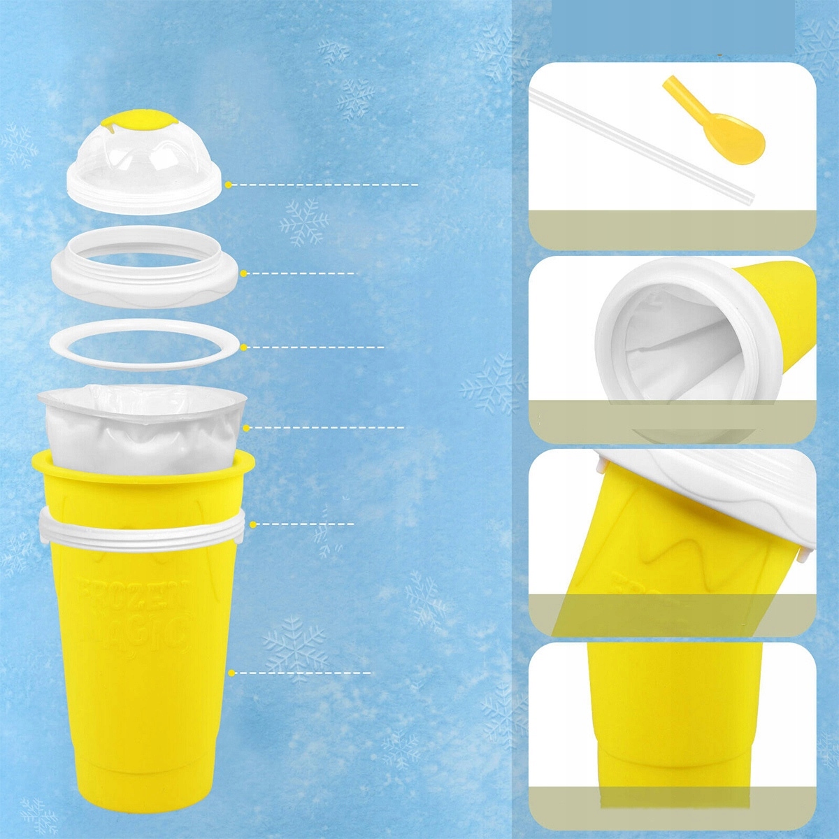замороженная ледяная кружка/ледовочная чашка с замороженной ледяной магией с соломой и ложкой
