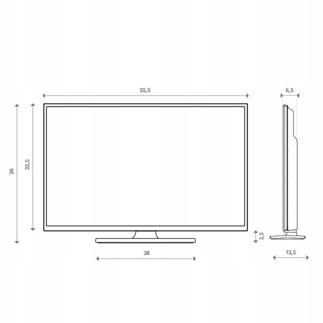 - Размеры с подставкой: 55,5 см x 36 см x 13,5 см
