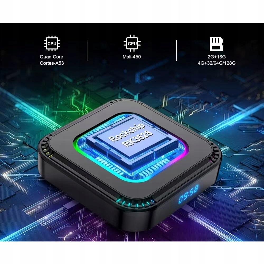 💗ПРОЦЕССОР ROCKCHIP RK3528 — обеспечивает эффективную обработку данных, низкое энергопотребление и поддержку контента 4K, что делает его идеальным выбором для мультимедийных устройств и устройств IoT (Интернета вещей).