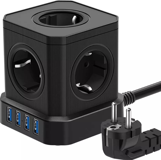 ✅ 4 розыгрыша и 4 USB - благодаря 4 сокетам и 4 USB-портам, наш куб расширения предоставляет достаточно места для подключения всех ваших устройств одновременно, без беспорядка и ограничений.