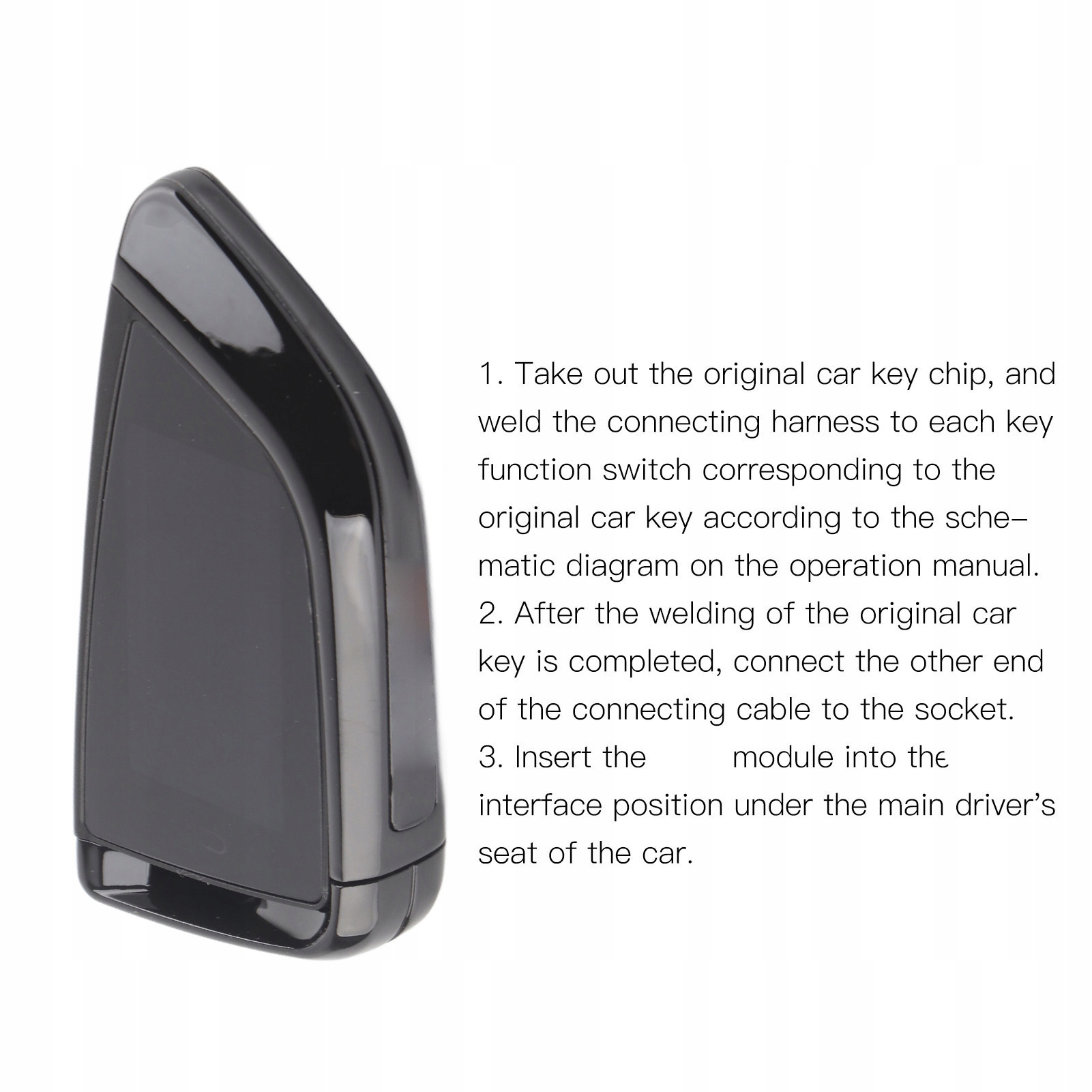 1. Снимите чип оригинального автомобильного ключа и приварите жгут проводов к каждому функциональному переключателю, соответствующему оригинальному автомобильному ключу, в соответствии со схемой в руководстве пользователя.