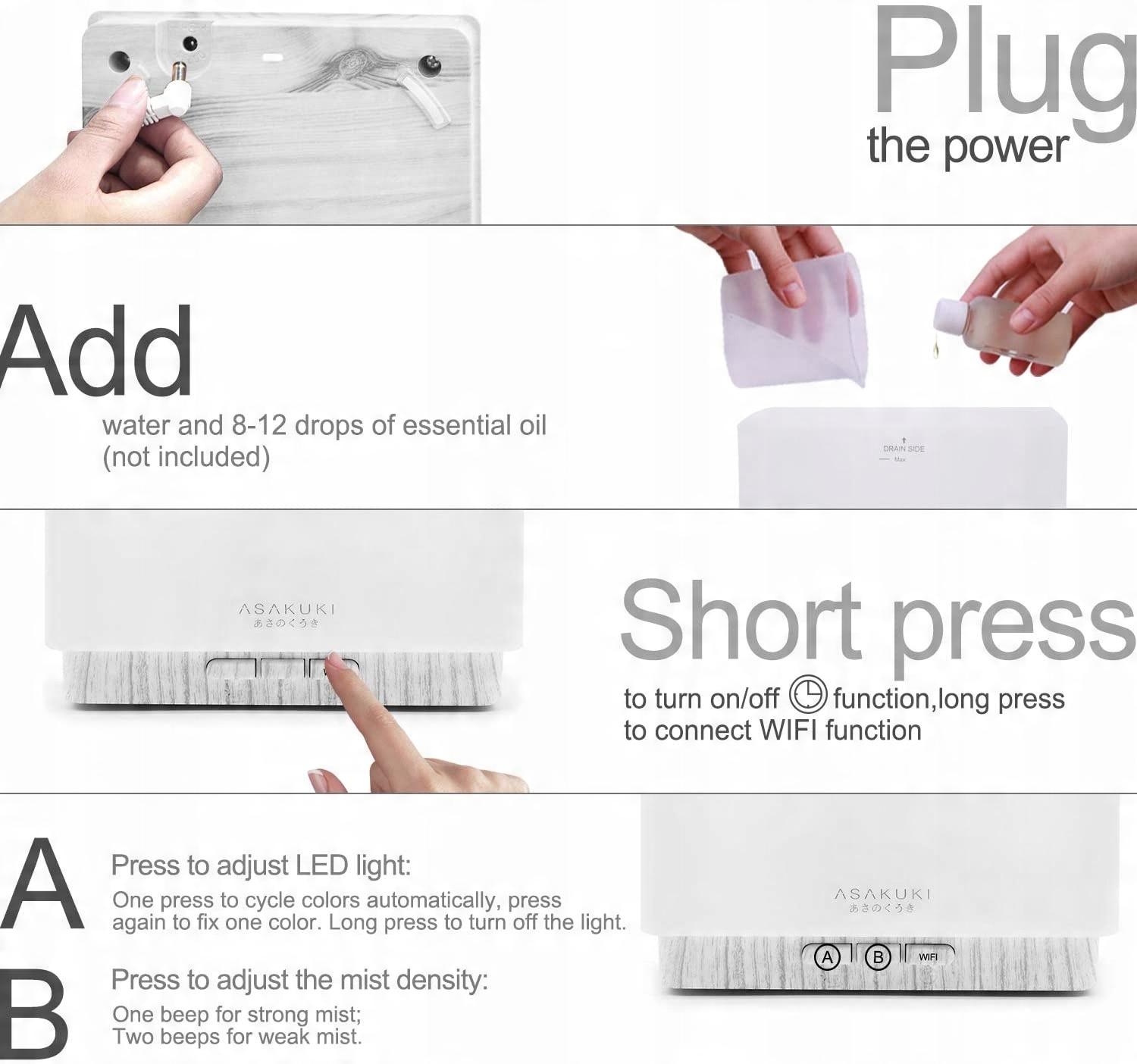 Хотите создать идеальную атмосферу в своем доме, чтобы вы могли расслабиться и снять стресс? Вы ищете способ лучше спать и дышать? Вам нужен увлажнитель воздуха, но большинство из них немного сложны в использовании? Что ж, вам не о чем беспокоиться, потому что у нас есть идеальное решение для вас! Диффузор эфирного масла ASAKUKI Wi-Fi — это именно то, что вы искали!