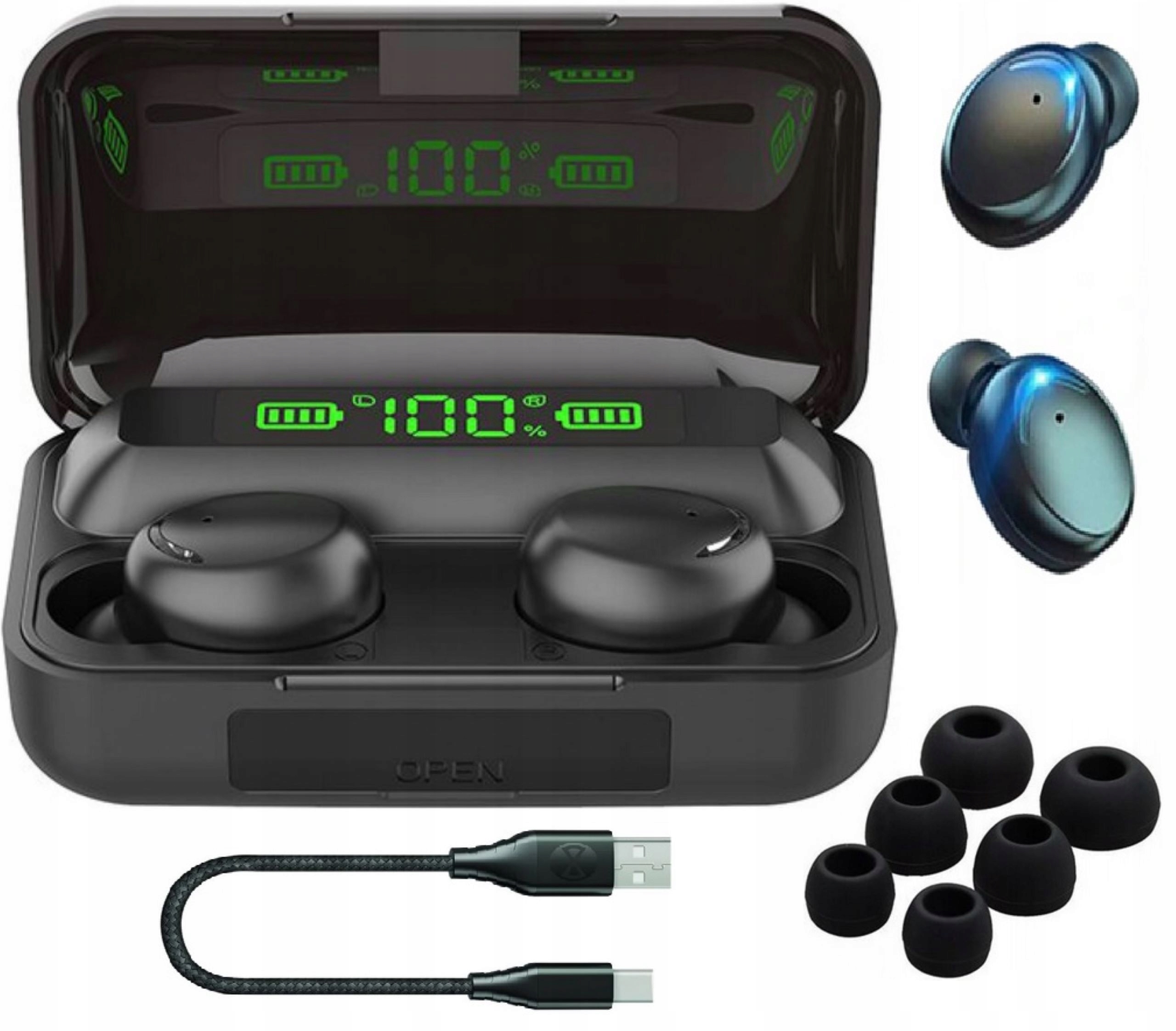 Наушники оснащены PowerBank со светодиодным дисплеем, который информирует нас о состоянии зарядки футляра и наушников. Порты для наушников имеют магниты, как и крышка кейса, что гарантирует, что наушники не выпадут.