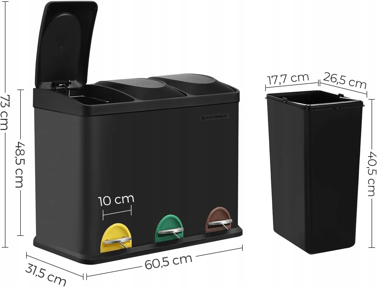 - Сортировка мусора – это так просто: с помощью этого мусорного бака емкостью 3 x 15 л вы можете легко разделить отходы, например, остаточные отходы и биологические отходы. . Таким образом, поощряется правильная сортировка мусора для привычки и переработки.