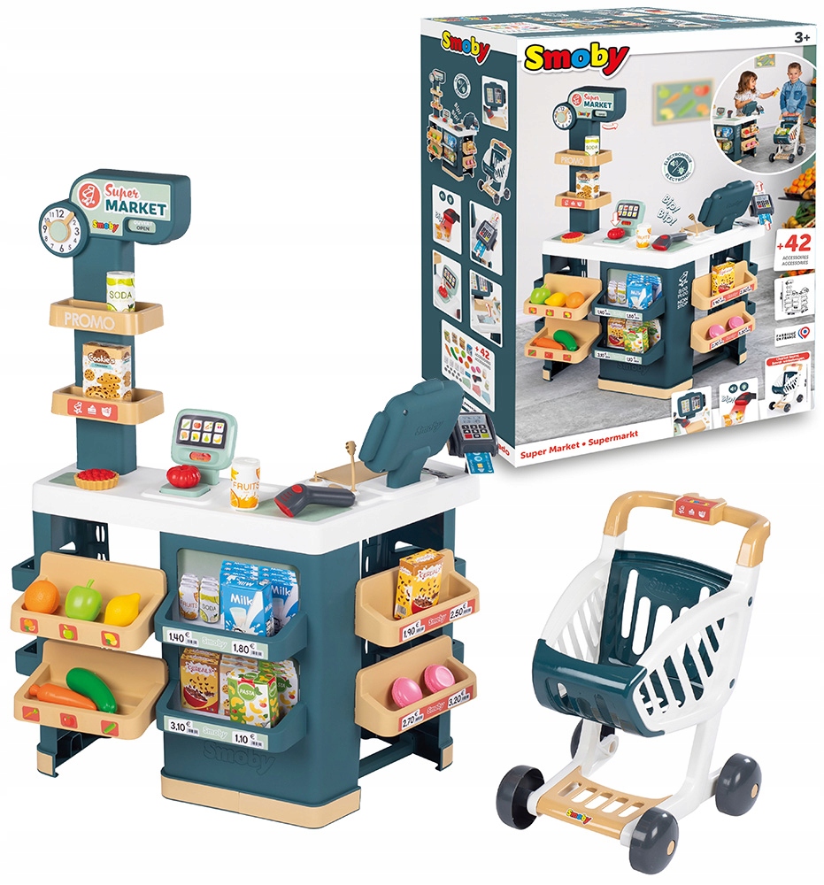 Супермаркет с тележкой, электронной кассой со сканером и весами от Smoby – это современный продуктовый магазин, где дети могут делать покупки и продавать товары. Будь то за прилавком магазина или перед ним – шопинг станет по-настоящему увлекательным!