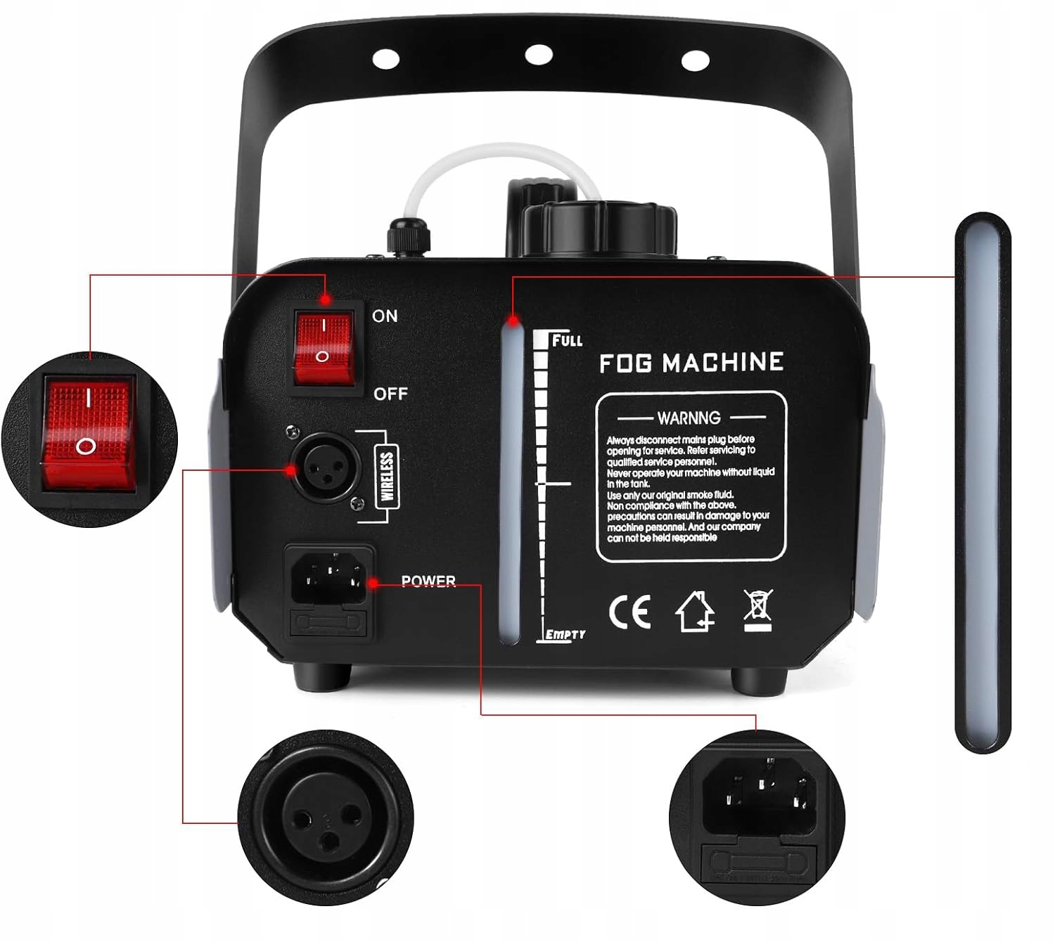 Пульт дистанционного управления: оснащен дистанционным управлением, так что вы можете использовать его удаленно. Согреть в течение 2-5 минут, когда свет дистанционного управления становится зеленым, просто нажмите кнопку пульта дистанционного управления (R/B/G/FOG). Его можно использовать на расстоянии 15 метров и обеспечивает непрерывный дым в радиусе