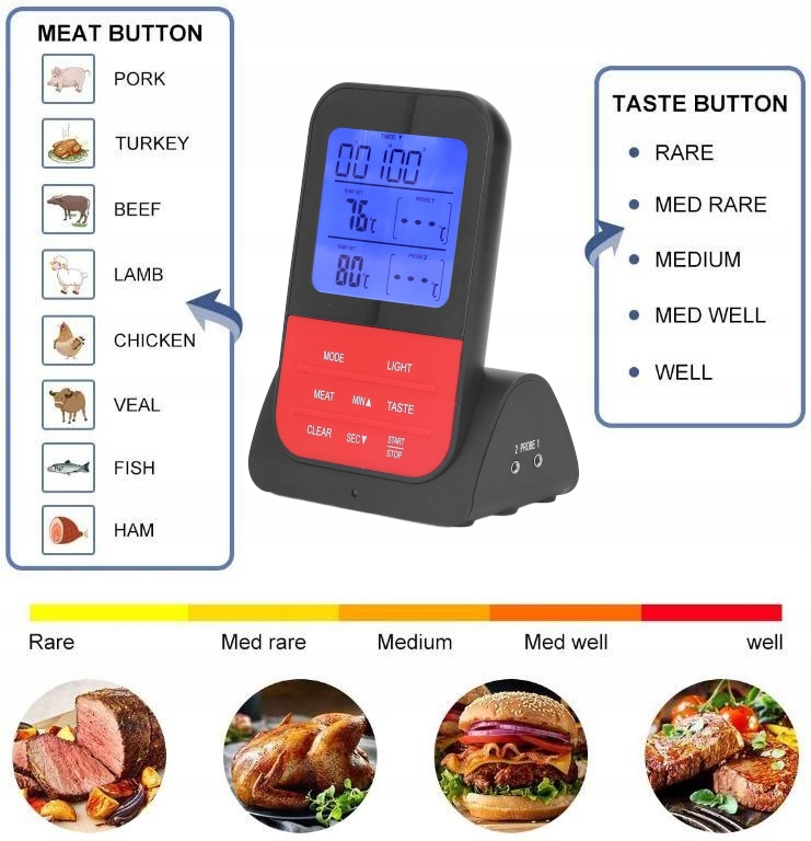✅Предварительно запрограммированные идеальные целевые температуры для многих видов мяса