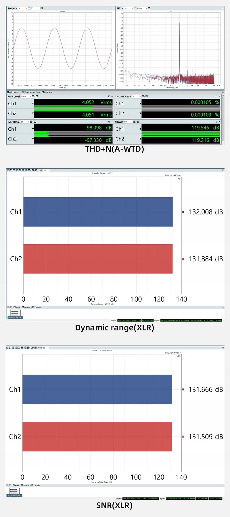 Измеренное искажение M300 SE составляет всего 0,00013%, отношение сигнал/шум балансного выхода составляет 131 дБ, а динамический диапазон выхода XLR составляет целых 132 дБ. Это отличные показатели производительности данного устройства.