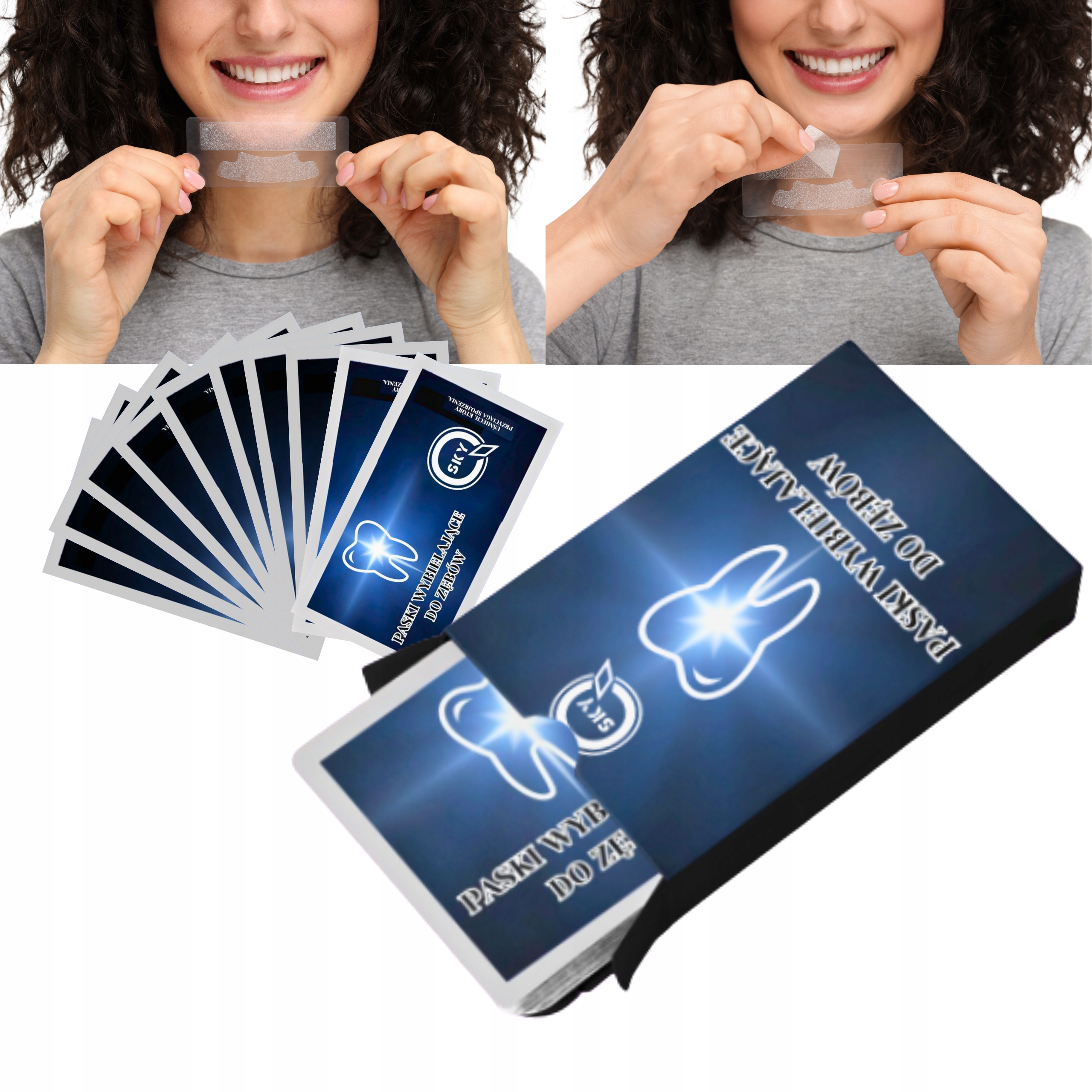 2️⃣ Поместите полоску, покрытую гелем, на зубы - когда почувствуете, что полоска лежит на зубах равномерно, приклейте ее, надавив на нее пальцами