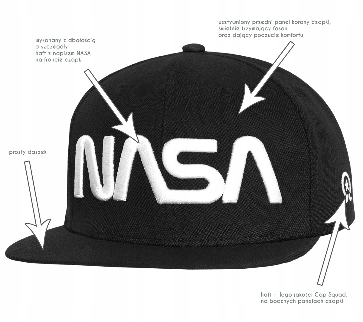 - вышивка - качественный логотип Cap Squad, на боковых панелях кепки