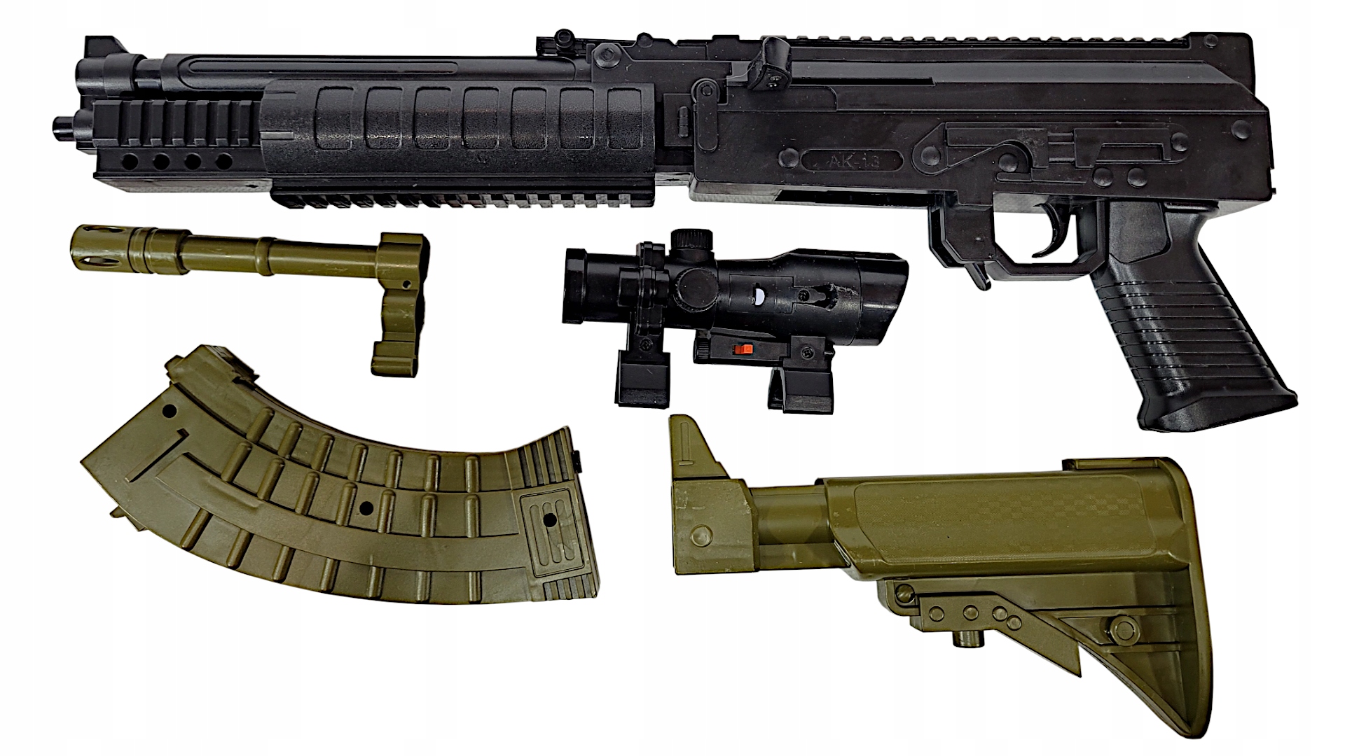 СНЕЙКЕРНАЯ ВИНТОВКА ДЛЯ ШАРОВ 6 мм. АК13 + ГРАНАТ + ЛАЗЕР