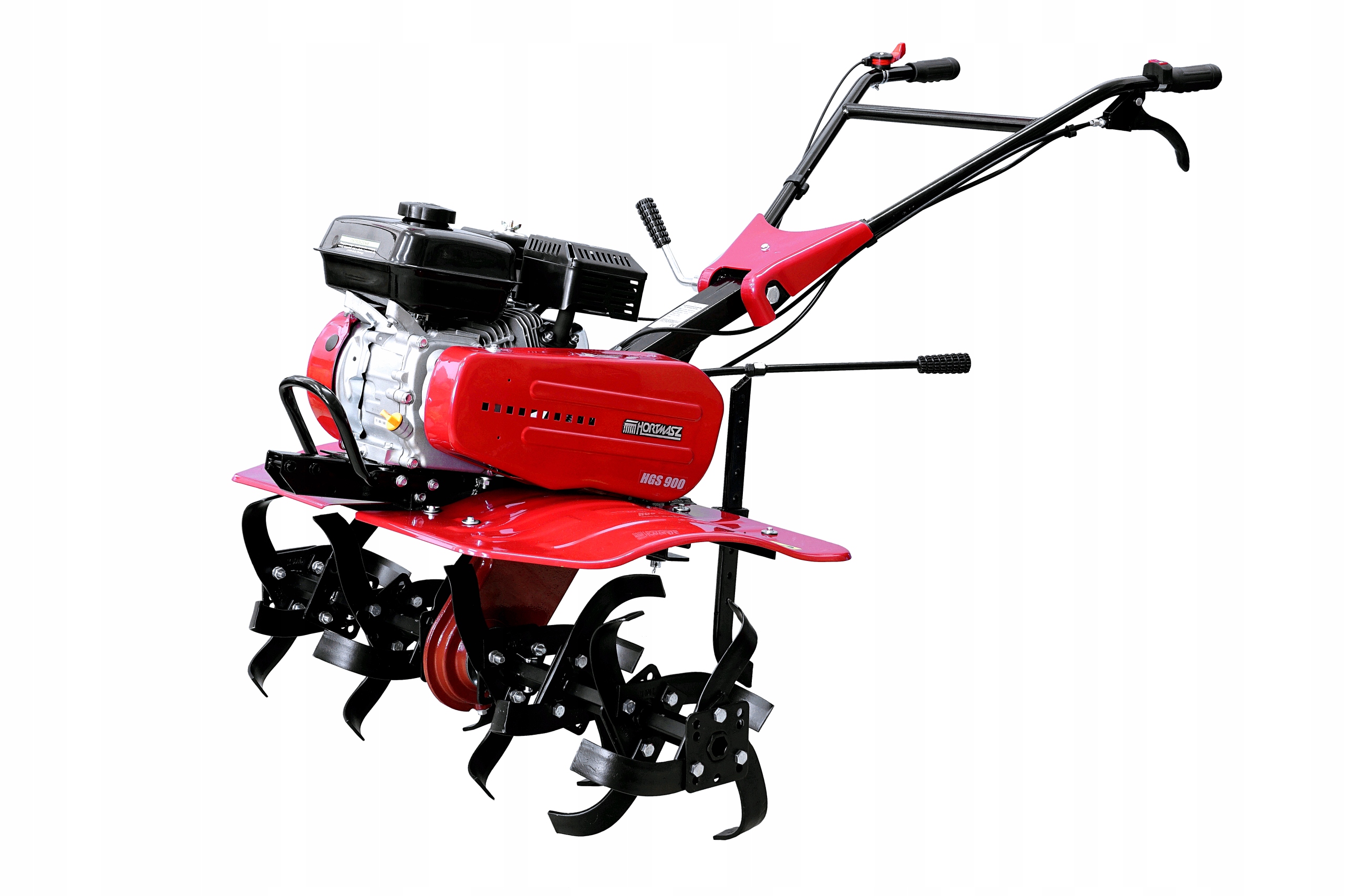 Бензиновый ротаватор HGS 900 – это очень большая и мощная машина, предназначенная для интенсивной работы в самых тяжелых условиях. Верхнеклапанный двигатель объемом 212 куб.см гарантирует достаточный запас мощности при работе с максимальной шириной захвата машины. Коробка передач с двумя передними и одной задней передачей гарантирует комфортную работу мотоблока и микротрактора, который легко трансформируется в машину для перемещения или работы с плугом, окучником или овощеуборочной машиной.