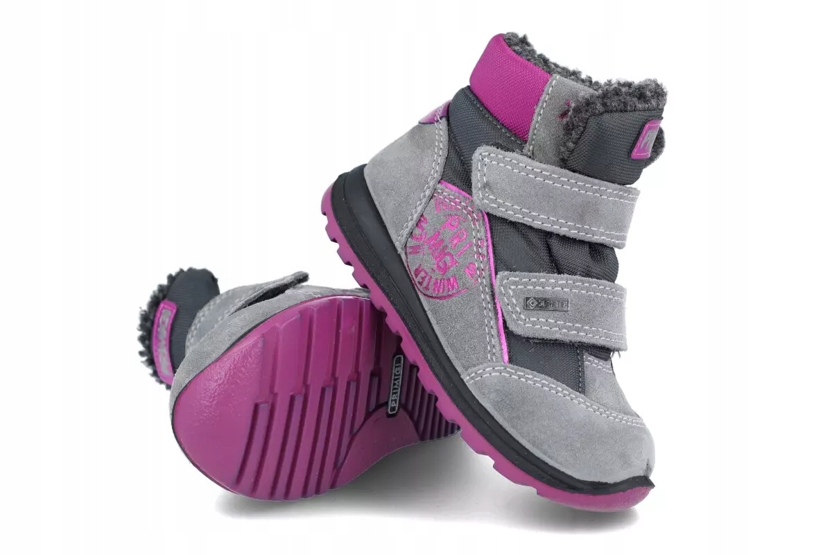 - Серые зимние сапоги для девочек PRIMIGI 2853166 с фиолетовыми вставками и мягкой подкладкой подарят детским ножкам максимальный комфорт. Благодаря тому, что зимние ботинки PRIMIGI оснащены мембраной Gore-Tex, мы можем быть уверены, что обувь не промокнет во время игры на снегу или в походе. Ваши ноги также не будут потеть, даже если температура на улице немного повысится.