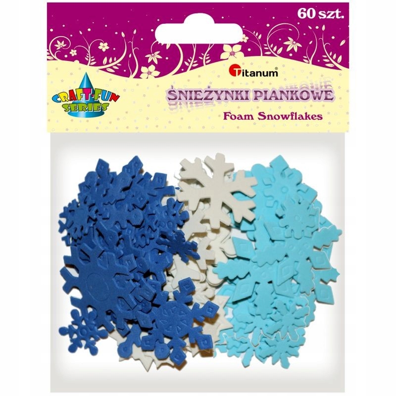 Серия титановых украшений из пенопласта Craft-Fun в виде снежинок. Размеры варьируются (смесь). Набор содержит 60 снежинок, идеально подходящих для украшений, проектов DIY, изготовления поздравительных открыток, украшения подарков и других творческих поделок.