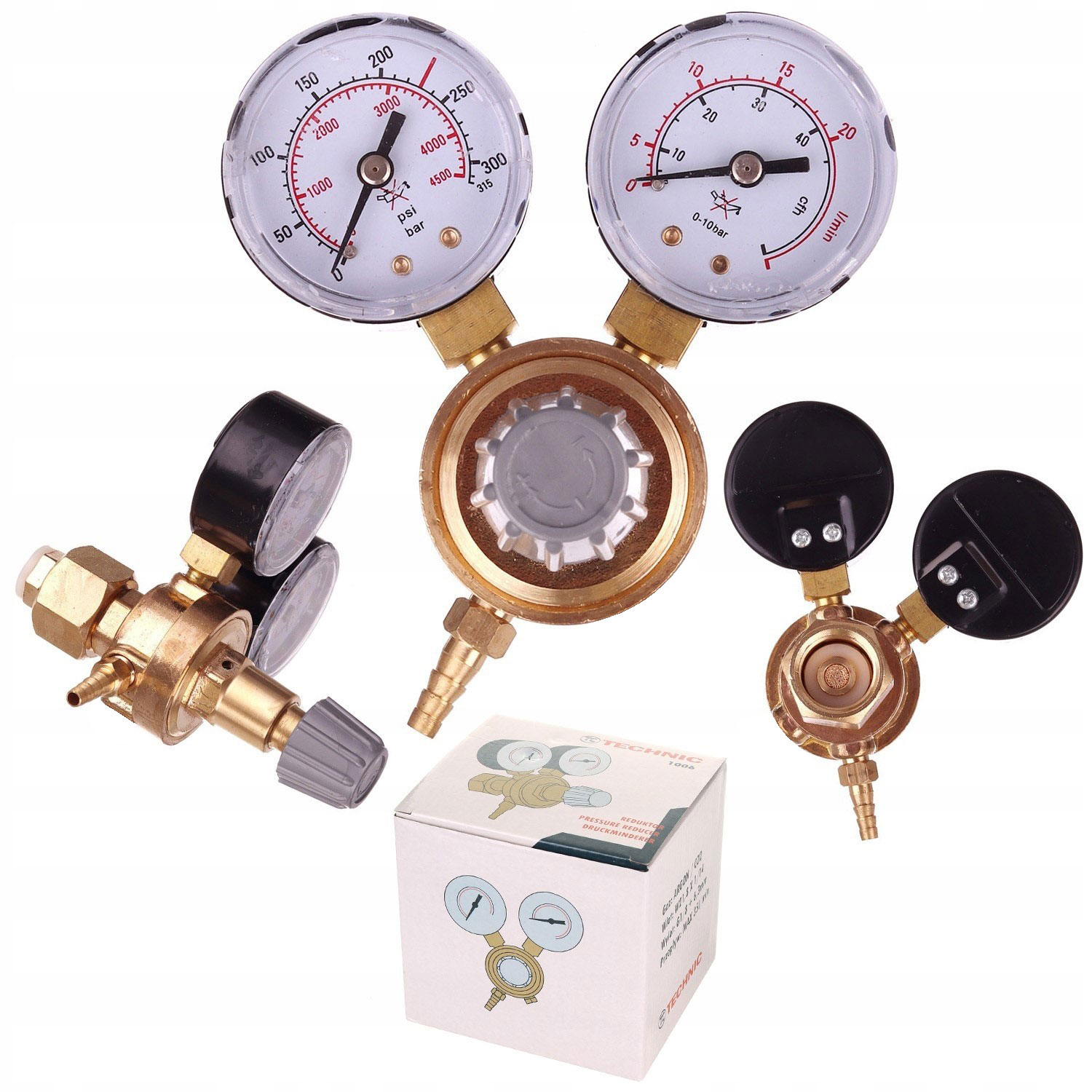 Редуктор давления с резьбой, подходящей для баллонов с аргоном или углекислым газом (CO2). Чаще всего применяется при сварке при сварке методами MIG, полуавтоматами или сварочными аппаратами TiG, где требуется газовая защита в виде аргона или углекислого газа. Оснащен двумя манометрами - первый показывает давление в баллоне, второй - расход газа в минуту.