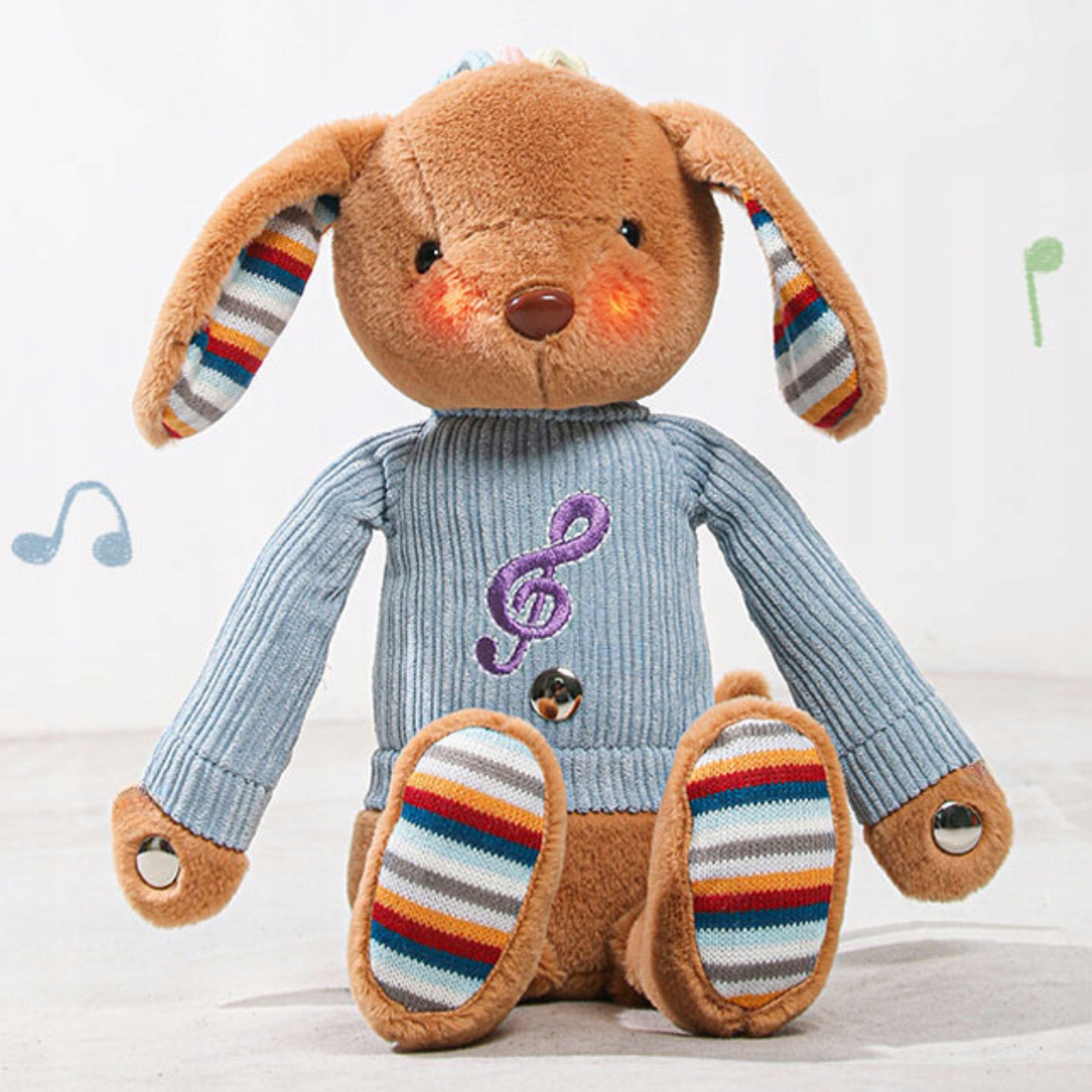 Ориентированная игрушка оснащена тремя сенсорными зонами - на лапах и животике, чье прикосновение превращается в музыку. И его розовые щеки освещены, создавая настоящую сказочную атмосферу вокруг игрушки. Ориентированная игрушка в свитере, под которым пространство скрыто в 3 батареях. Этот плюшевый мишка станет другом ребенка с раннего возраста.