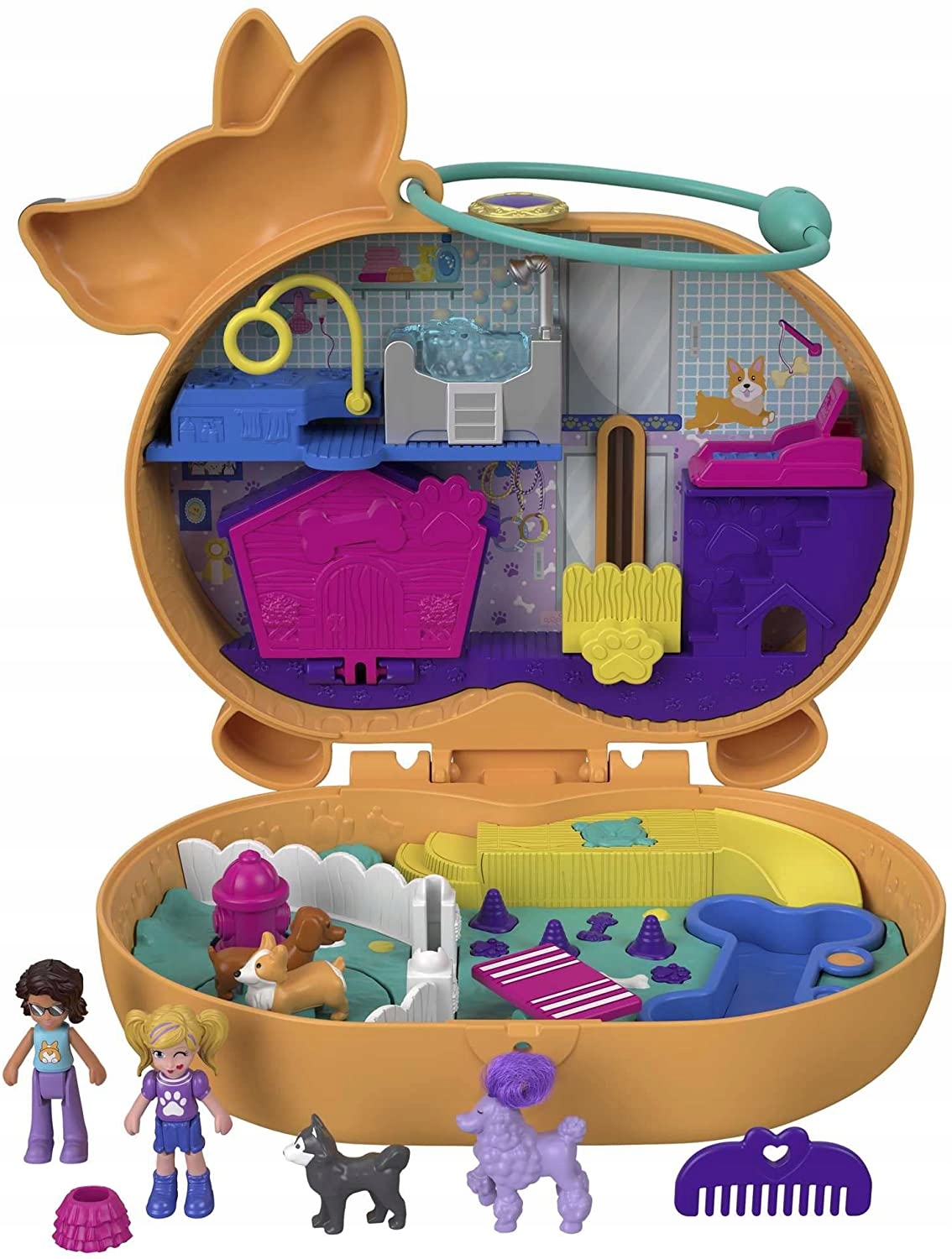 - Компактный игровой набор «Очаровательный Полли Карман» Очаровательный корги имеет форму корги. Открыв его, вы обнаружите отель для собак с микрокуклами Полли и Шани и двумя друзьями-собаками (пуделем и хаски)< /li>
