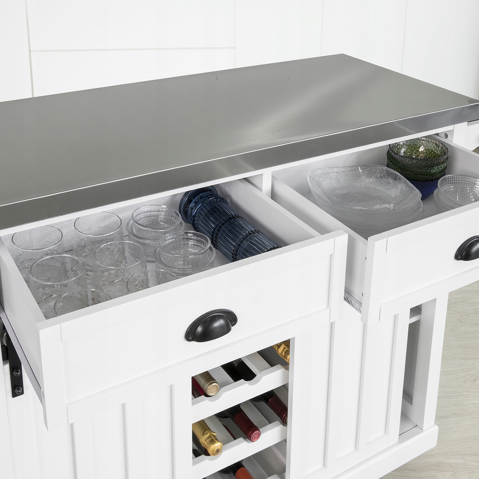 Столешница из нержавеющей стали, белый корпус и контрастные черные ручки Сделайте так, чтобы тележка привлекала внимание всех гостей.