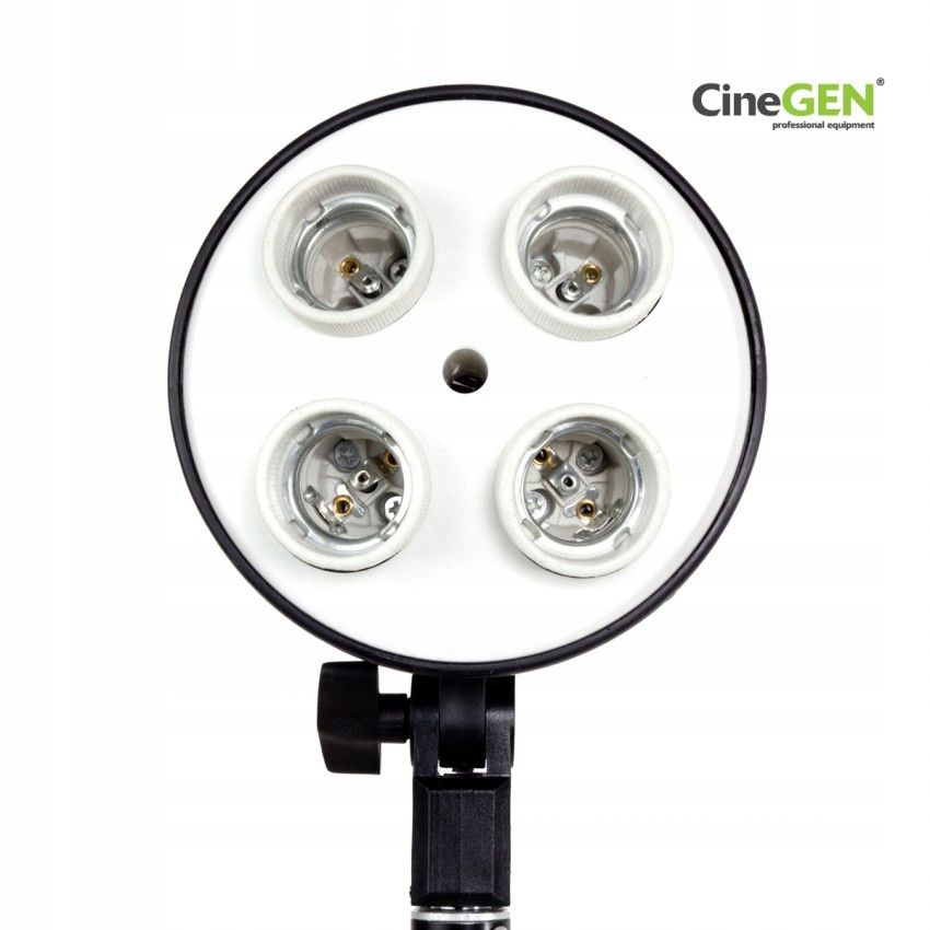 светильник освещения состоит из четырехкратной рамы для лампочек E27 и чаши для софтбокса (отражающая и диффузионная ткань и натяжения). Форма навеса была выбрана так, чтобы диффузионная ткань достигла максимального количества света. Внутри он закончен серебряной, металлизованной отражающей поверхностью - он предотвращает излучение света в сторону и в сторону и отражает их в желаемом направлении - диффузионной ткани. Это означает, что максимальное количество света переходит к сфотографированному объекту. Снаружи Softbox тусклый черный, благодаря которой он не отражает свет от других ламп. Это обеспечивает регулирование питания прыжков, включив/выключить лампочки (два переключателя): 0%-50%-100%. Набор прикреплен к освещению штатива с помощью ручки, которая обеспечивает любую регулировку угла наклона