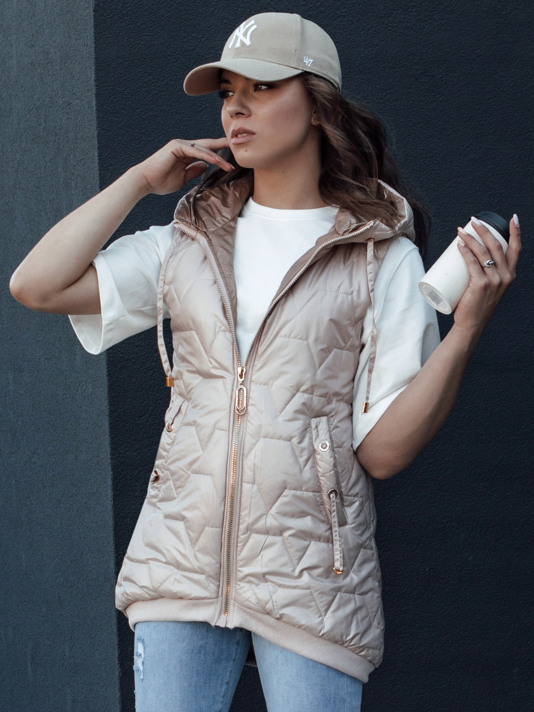 Этот стеганый жилет асимметричного кроя — идеальный элемент, дополняющий многие весенние образы. Оснащенная несъемным капюшоном, застежкой-молнией и двумя практичными карманами, она сочетает в себе стиль и функциональность. Мягкая изоляция делает его идеальным для холодных дней. Уникальный характер жилета подчеркивается манжетой из материала внизу и декоративными завязками на карманах и капюшоне. Модель доступна в пяти цветовых вариантах и наверняка станет любимым элементом вашего гардероба.