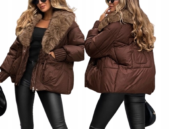КУРТКА СТЕГАНАЯ ШОКОЛАДНАЯ СО СЪЕМНЫМ МЕХОМ XXL 613