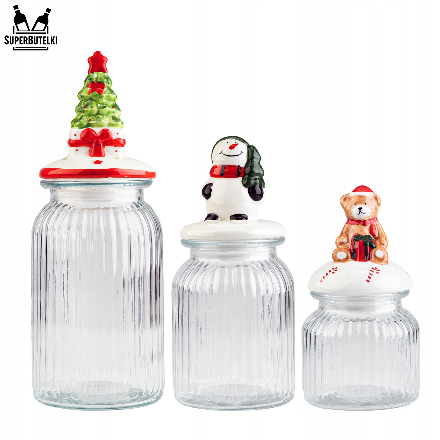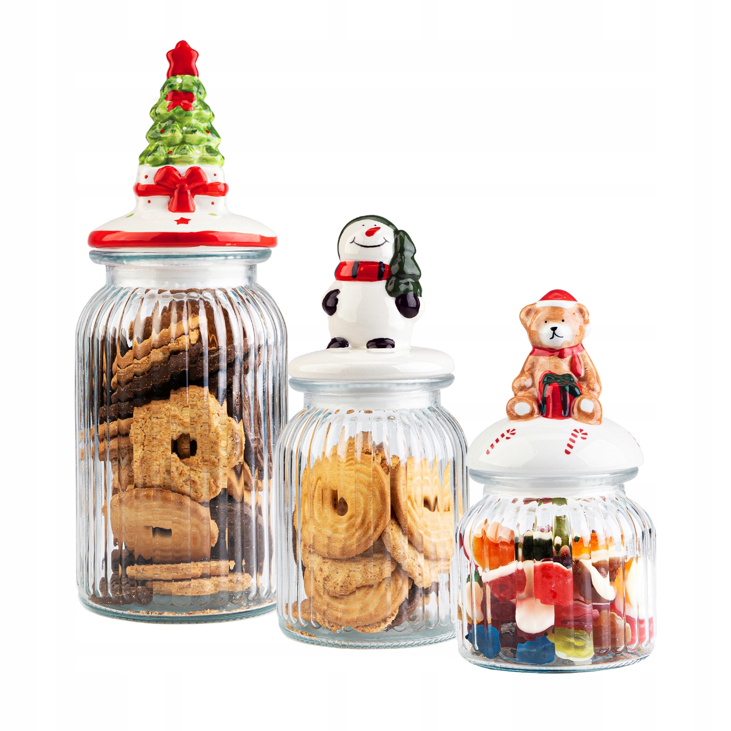 🎄 Три разных рисунка крышки — рождественская елка, снеговик и плюшевый мишка, составляющие целостный комплект.🫙 Контейнеры различных размеров — идеально подходят для печенья, конфет и небольших закусок.🔒 Плотное закрытие – обеспечивает свежесть хранящихся продуктов.👀 Прозрачное стекло — подчеркивает содержимое и придает композиции шарм.🏡 Декоративный характер – они прекрасно смотрятся вместе, создавая праздничный акцент на кухне.🎁 Отличная идея для подарка — практичный и элегантный набор для любимых.