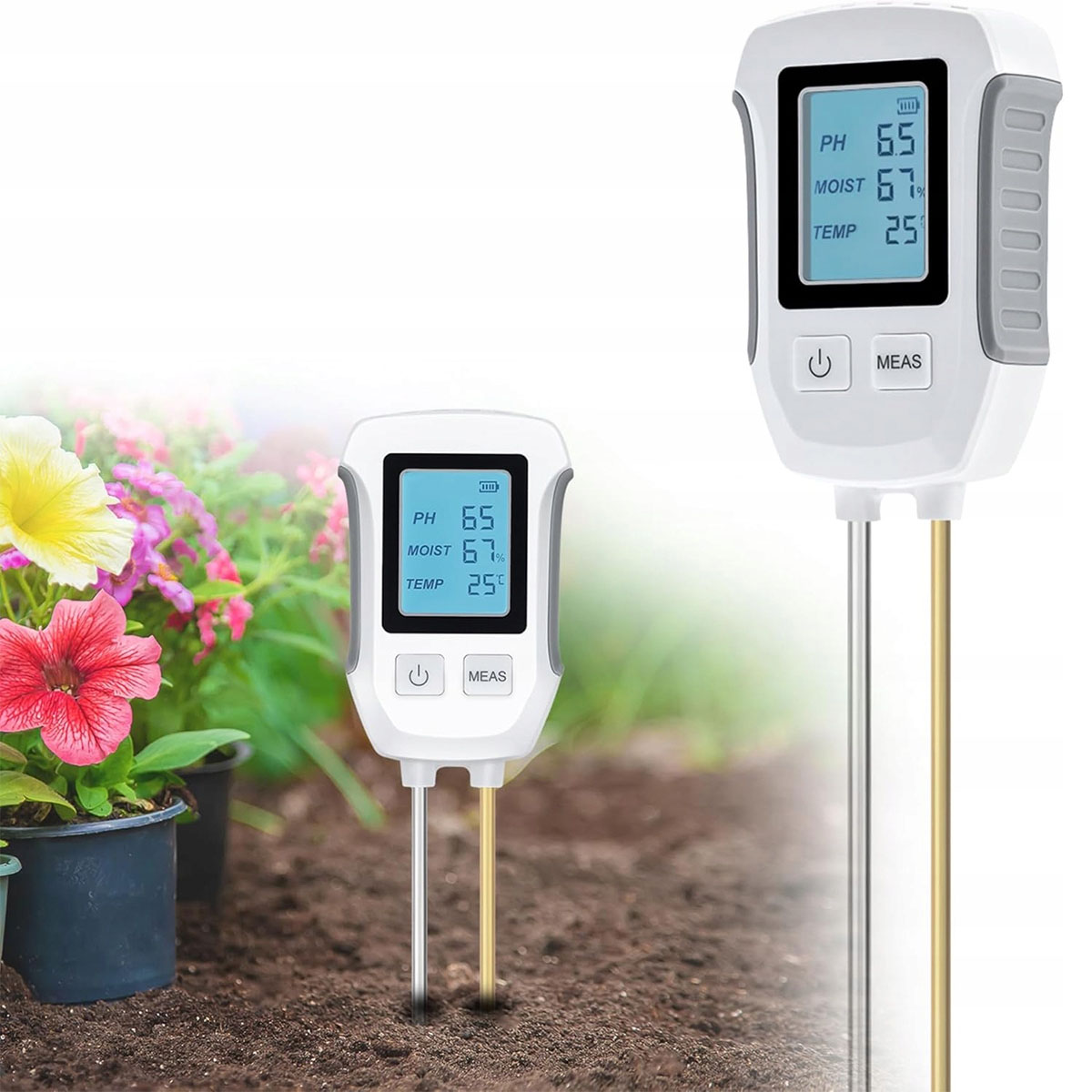 🌿Измеритель почвы 3 в 1, измеритель pH почвы, цифровой тестер почвы, измеритель влажности с температурой/влажностью и подсветкой для садоводства, сельского хозяйства, уличных растений (белый)🌿