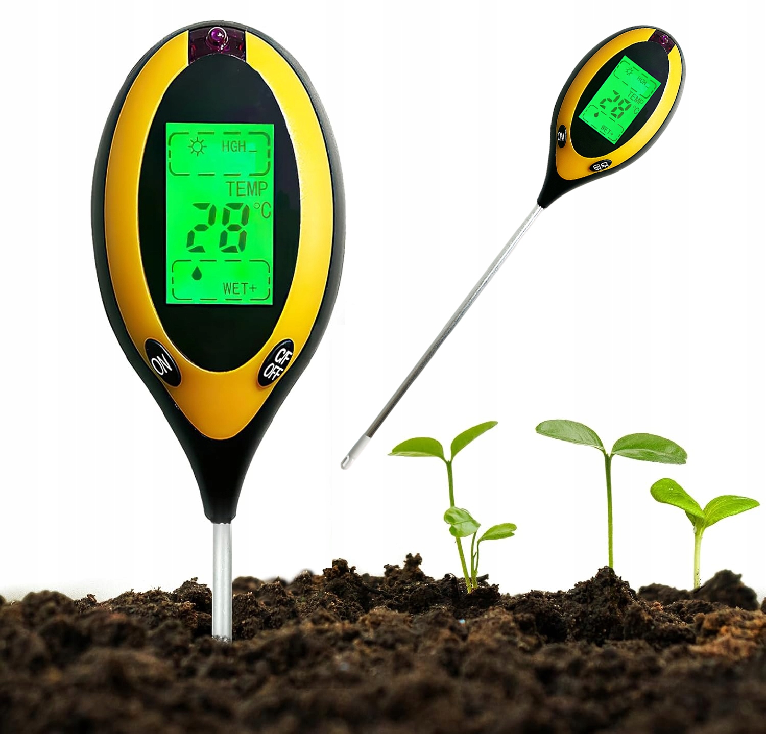 Чрезвычайно чувствительный датчик из алюминиевого сплава обеспечивает быстрые и точные результаты. Просто воткните его в землю на глубину 13 см и уже через несколько секунд вы получите достоверные данные измерений. Идеально подходит для использования в горшках, клумбах и на открытом воздухе.