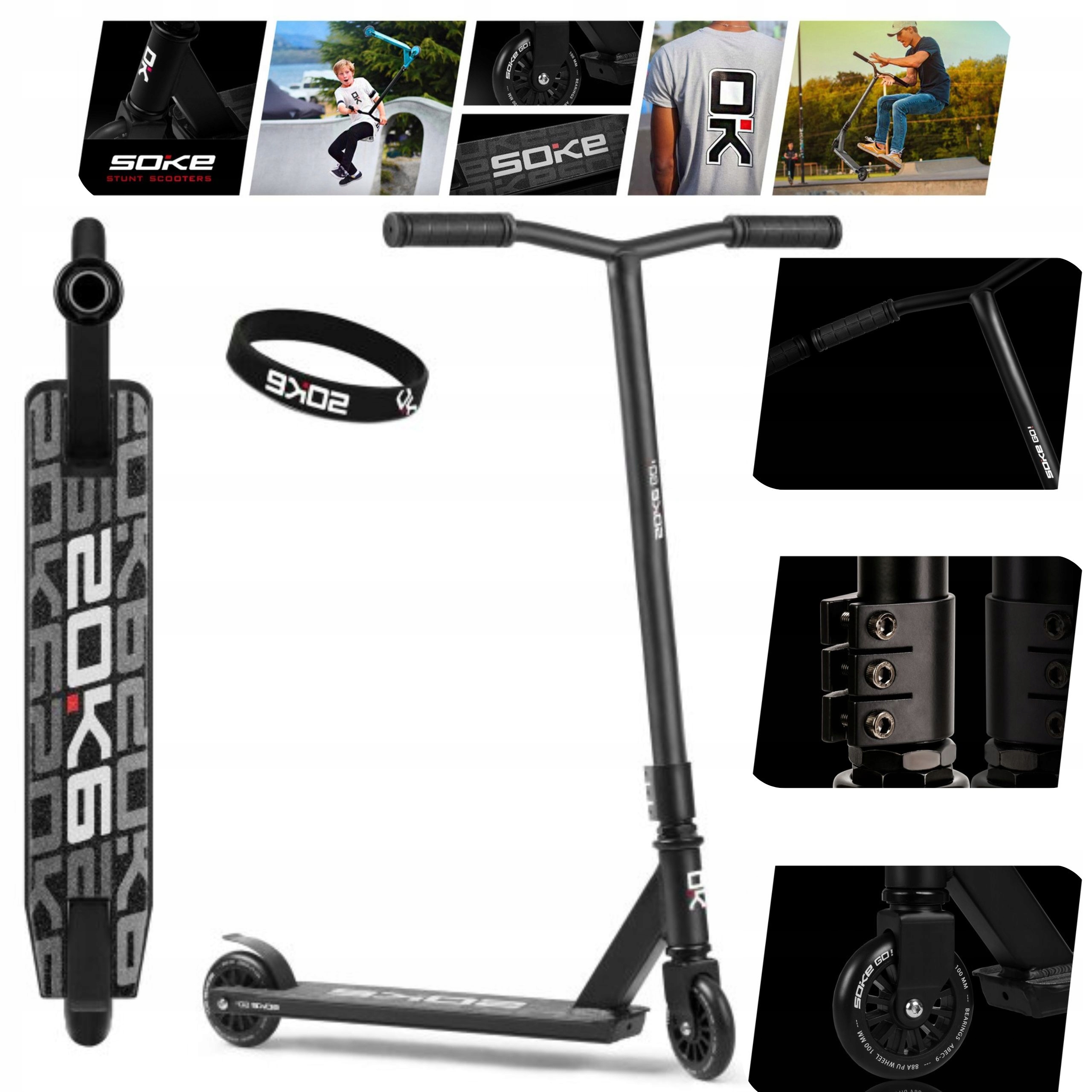 ➡️ Soke GO! black – легкий (всего 2,9 кг) и в то же время прочный трюковый самокат для любителей трюков и быстрой езды по скейт-парку. Широкий руль шириной 48,5 см с поворотом на 360° обеспечивает отличный контроль и баланс, а полиуретановые колеса 88A с высоким отскоком размером 100x24 мм гарантируют быстрое ускорение и уверенное скольжение по пандусам. Благодаря максимальному весу пользователя в 100 кг и прочным компонентам оборудование готово к интенсивному прогрессу – от первых ударов до более совершенных комбинаций.